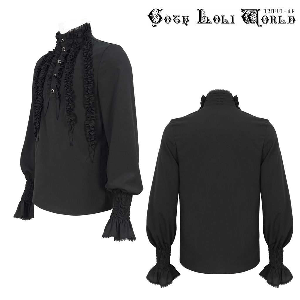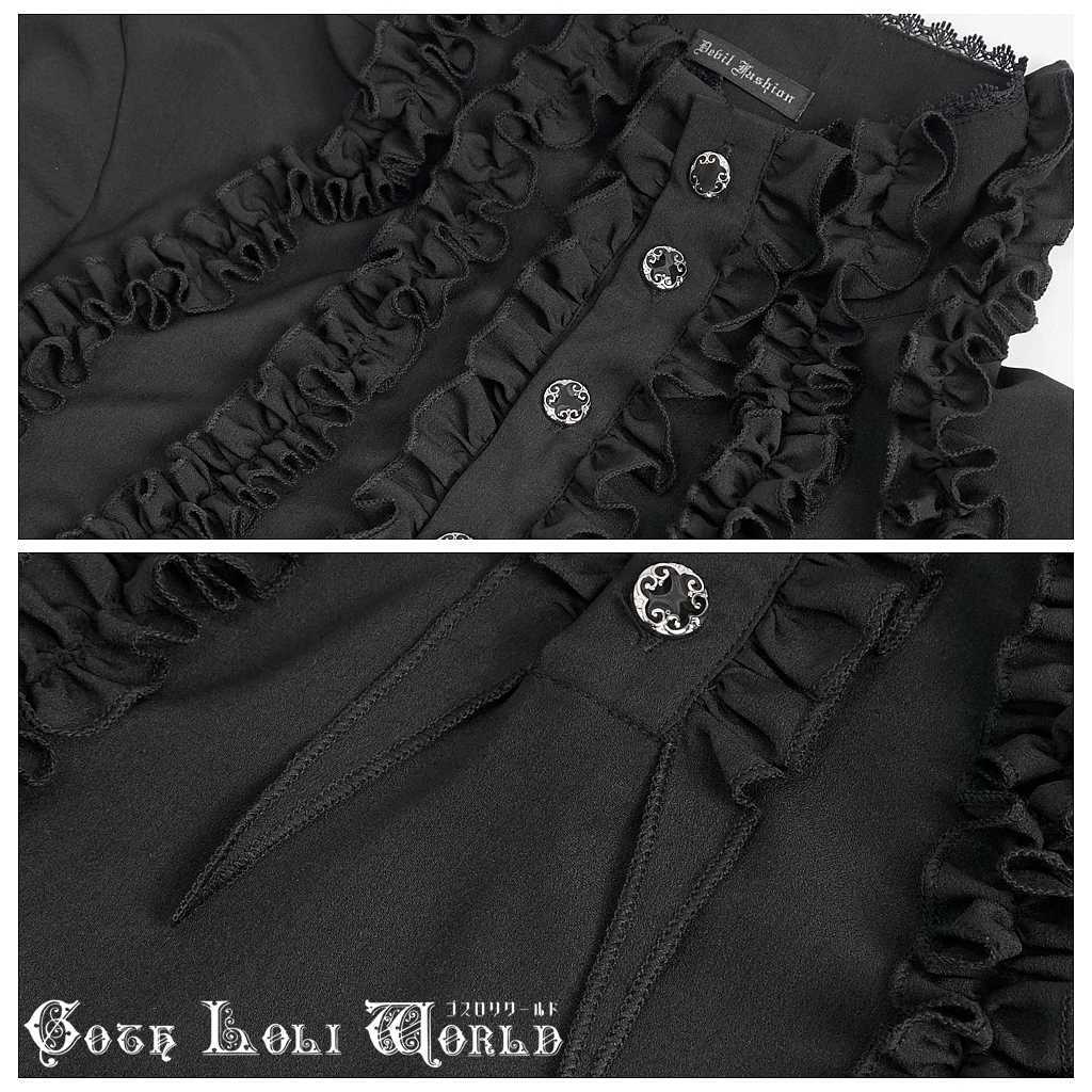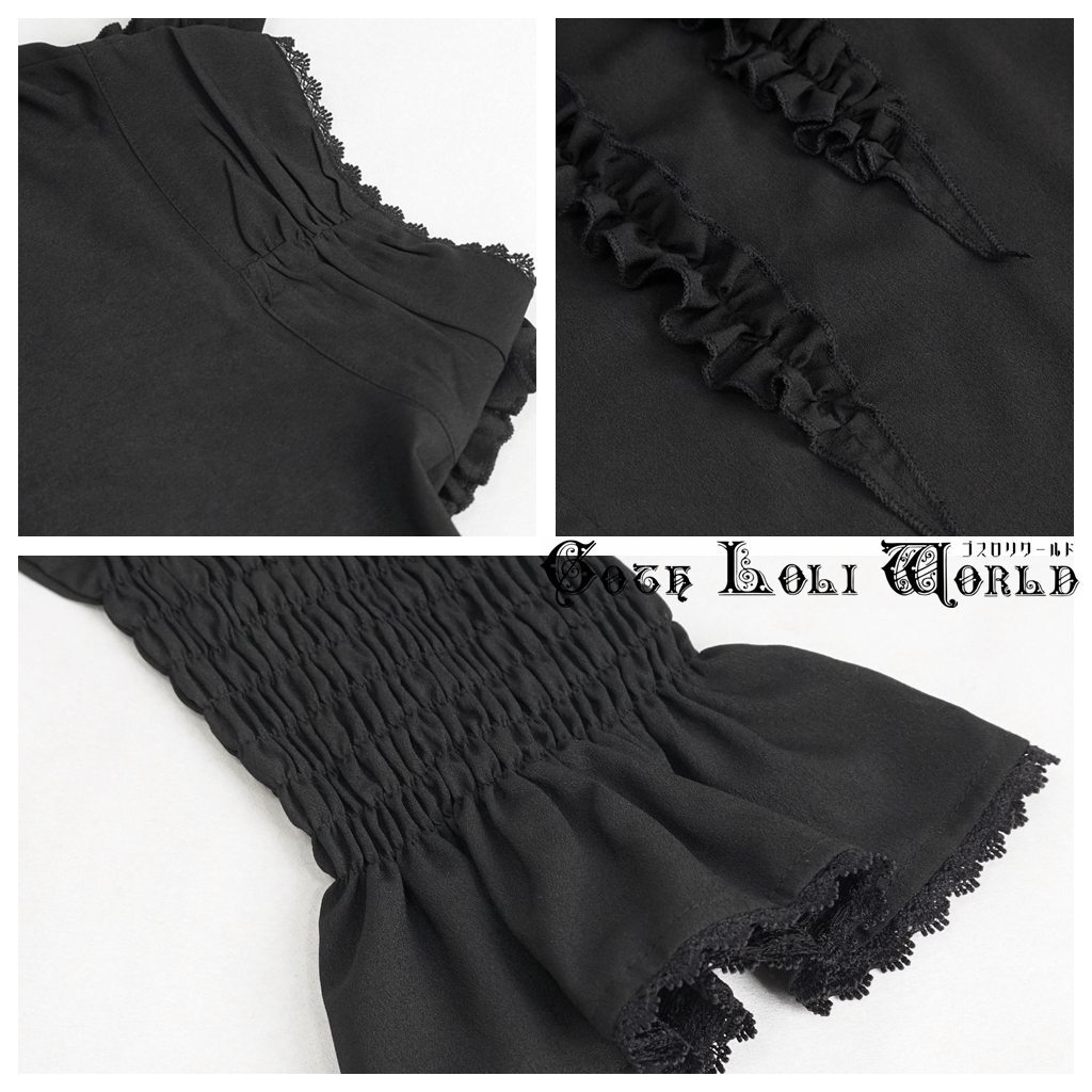 SHT10401-M フリルエンブロイダリーシャーリングスリーブ カットソー ブラック ゴスロリワールド ゴシック パンク ロック ビジュアル系 V系