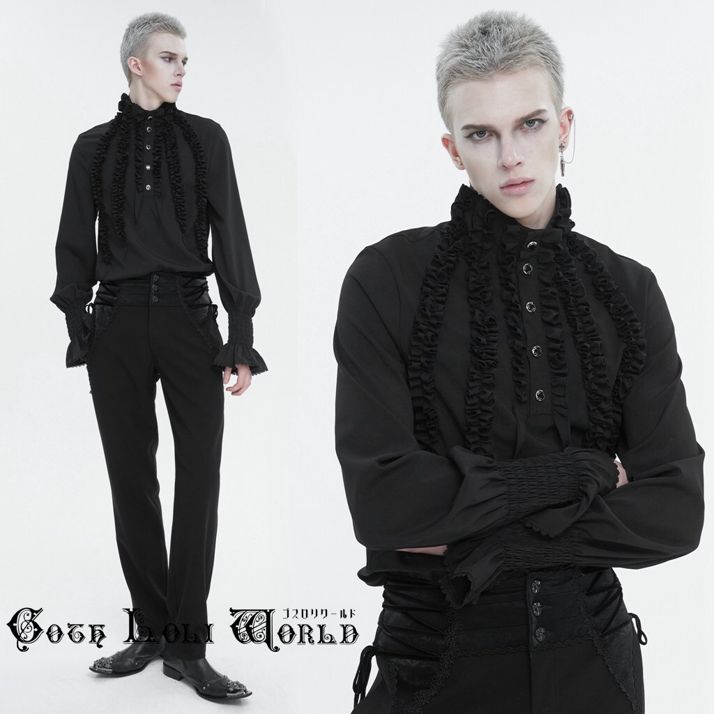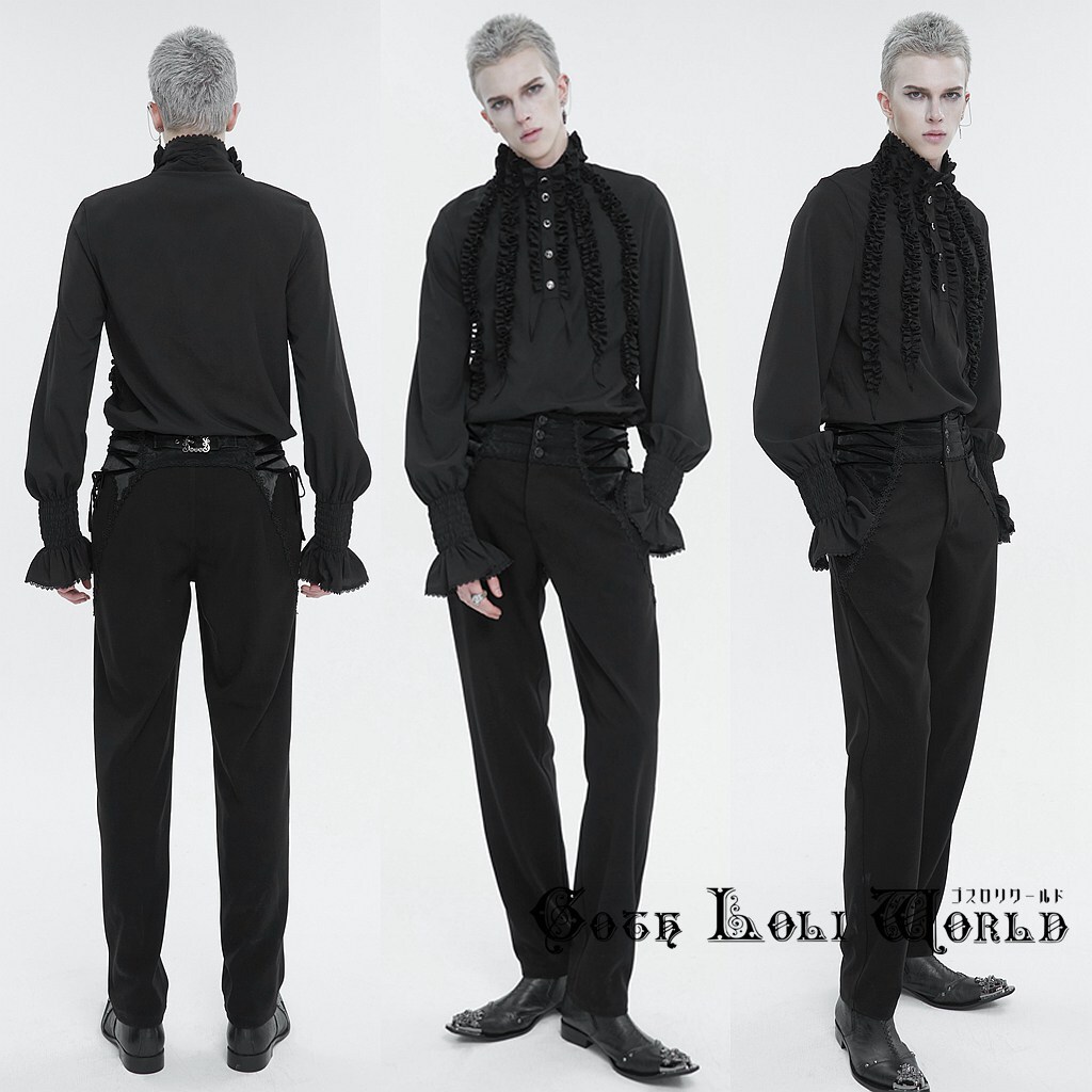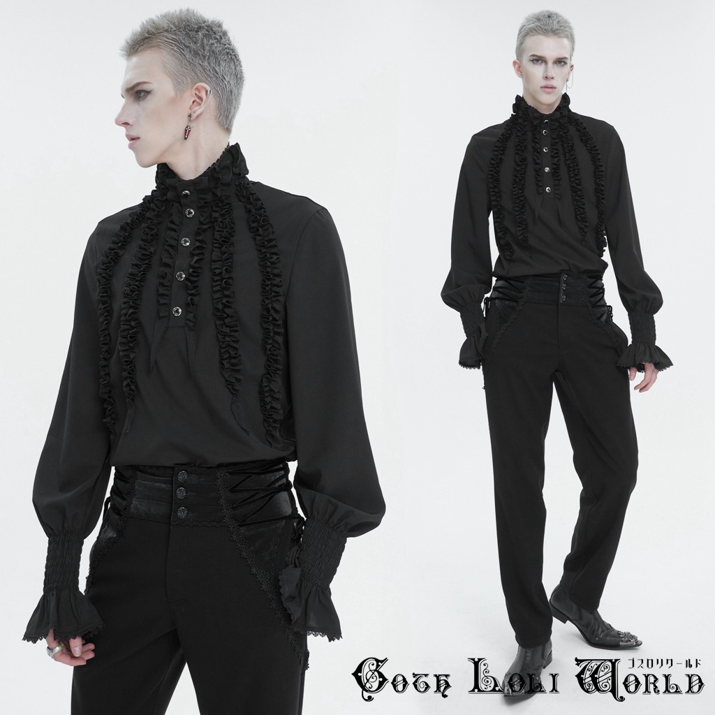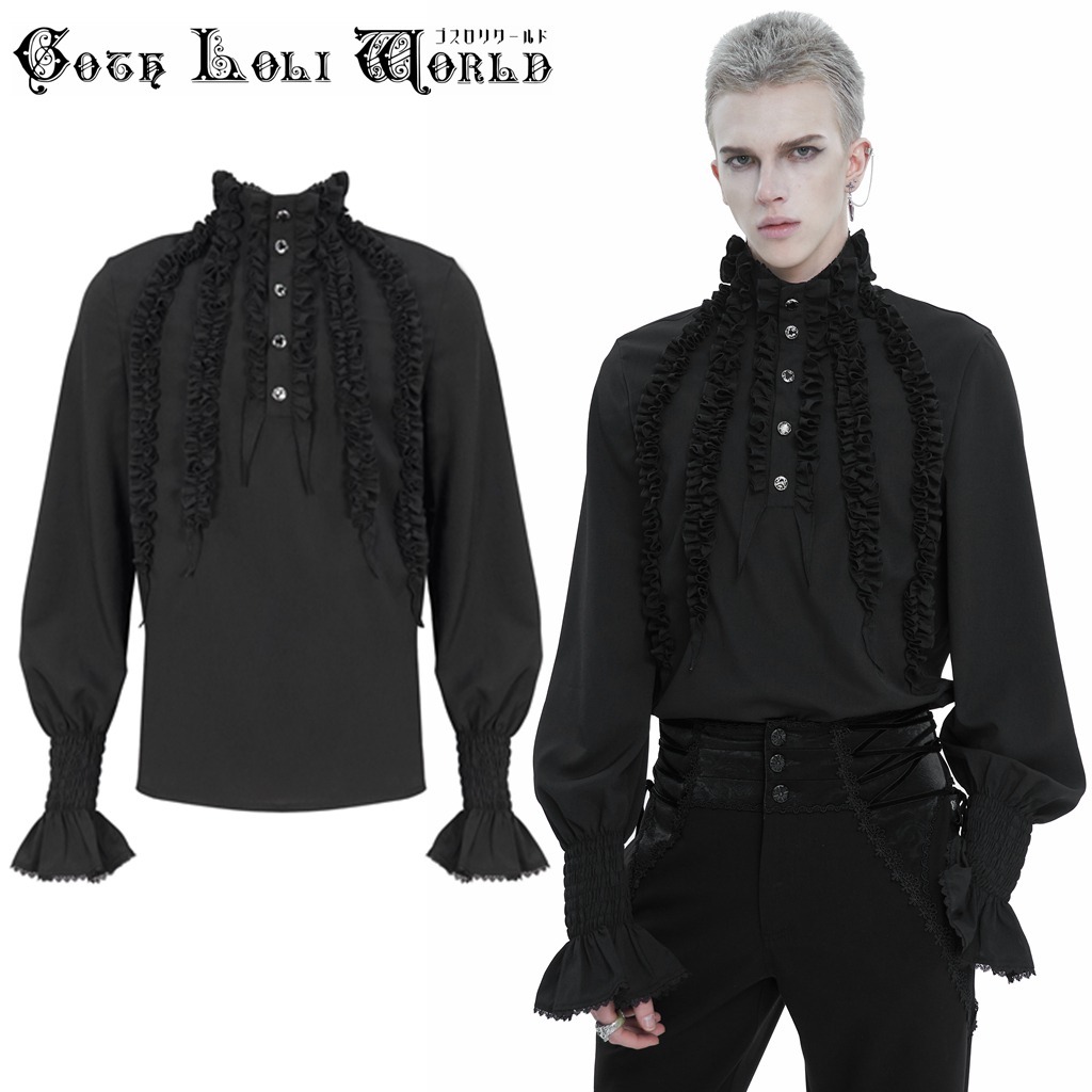 SHT10401-M フリルエンブロイダリーシャーリングスリーブ カットソー ブラック ゴスロリワールド ゴシック パンク ロック ビジュアル系 V系