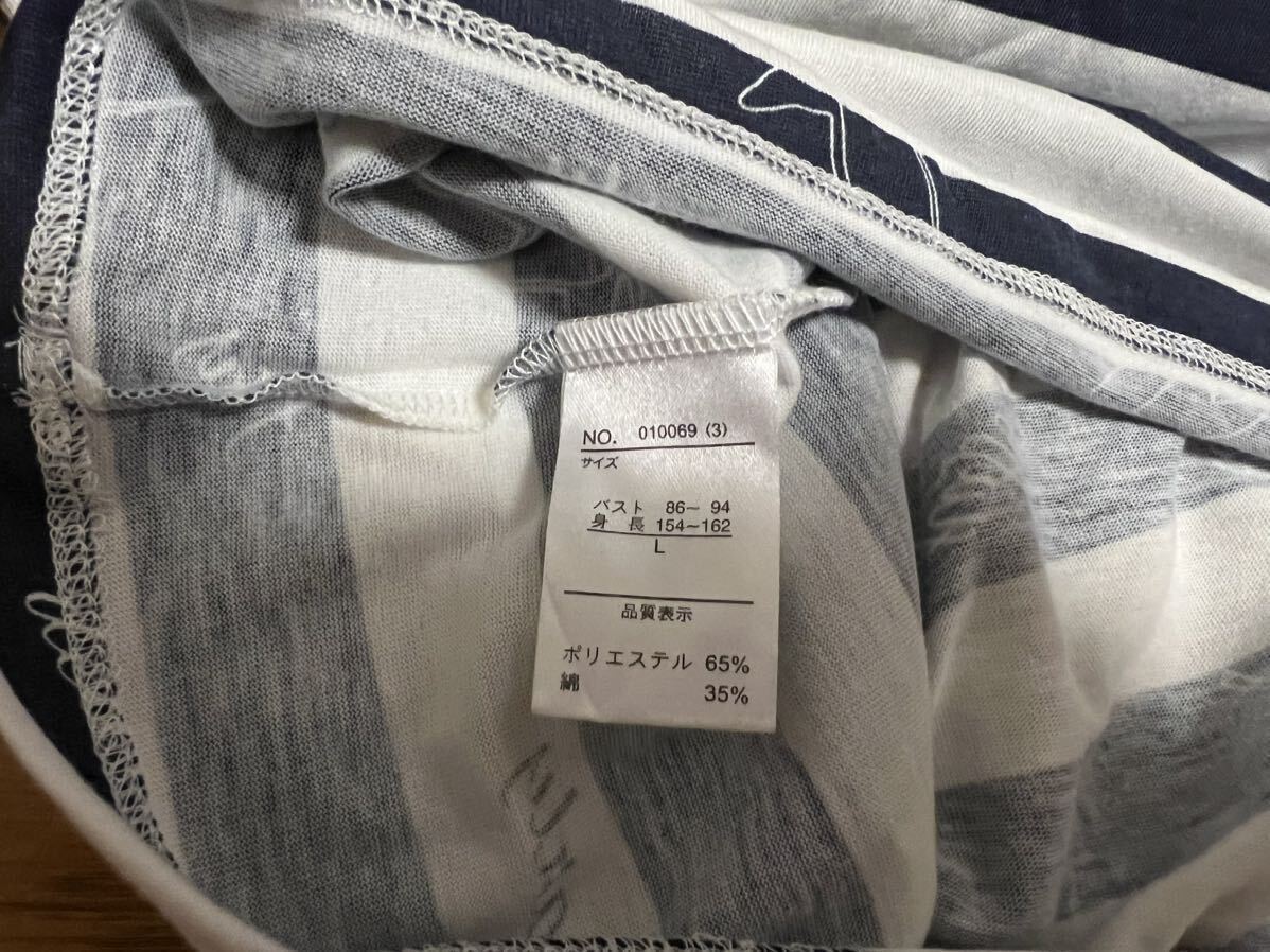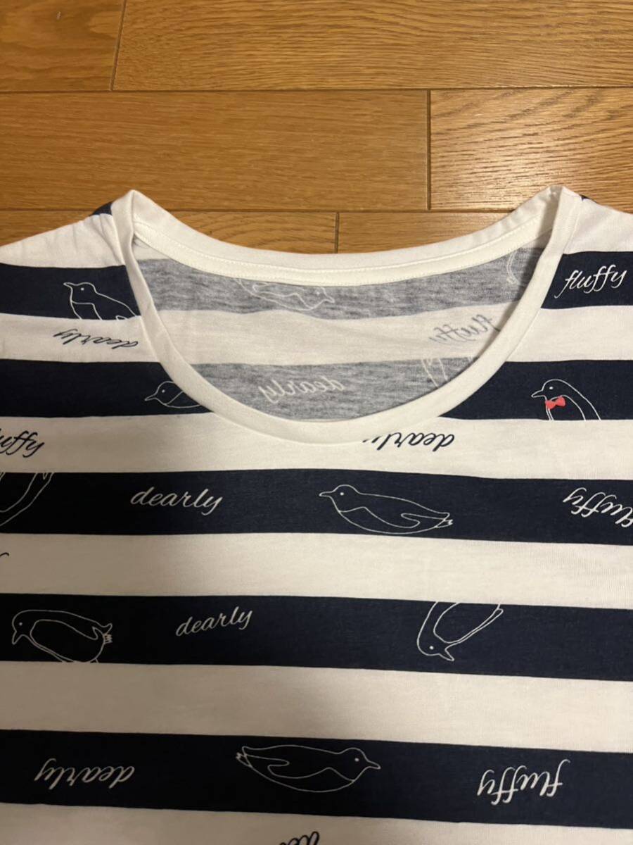 かわいいペンギン柄 ボーダー Tシャツ L スクロール レディース