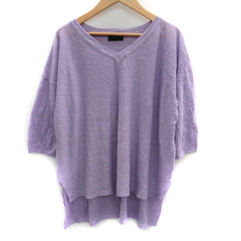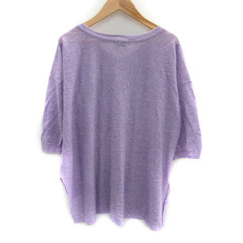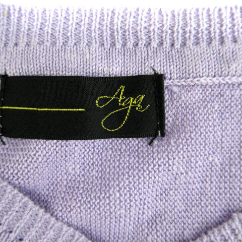 アーガ Aga カットソー 七分袖 Vネック 麻 リネン 紫 パープル /SM16 レディース