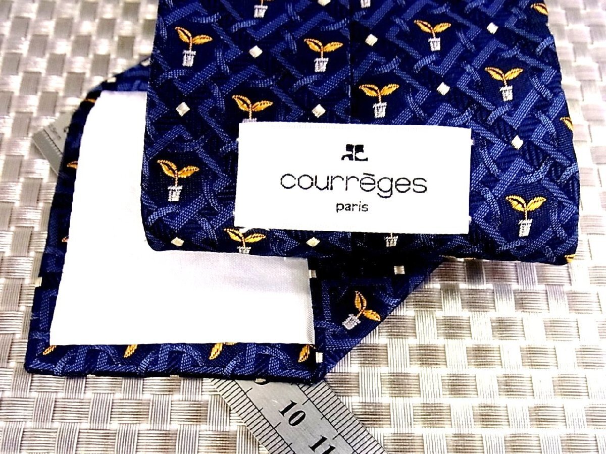 ♪34195C♪良品【刺繍 葉っぱ 植物 植木鉢 柄】クレージュ【courreges】ネクタイ