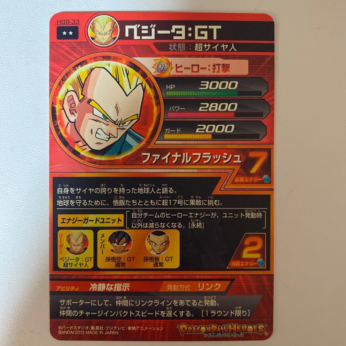 HG9弾レア/ ベジータ:GT(超サイヤ人)/ HG9-33/ 技:ファイナルフラッシュ/ ドラゴンボールヒーローズ/ レアリティ:☆☆/ 2013 BANDAI
