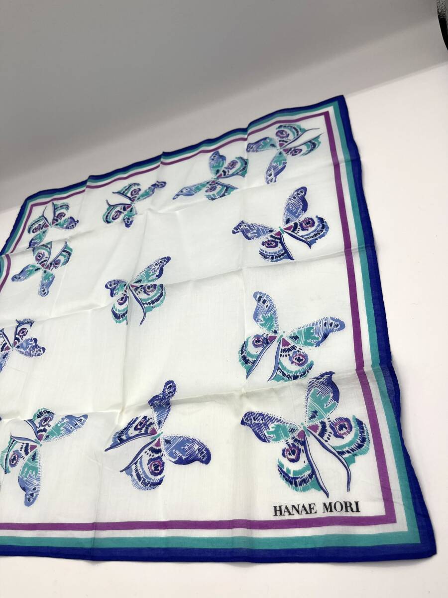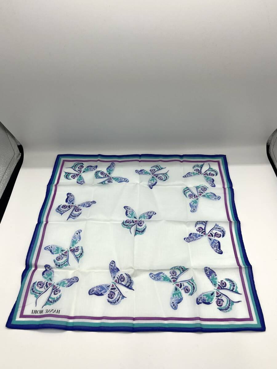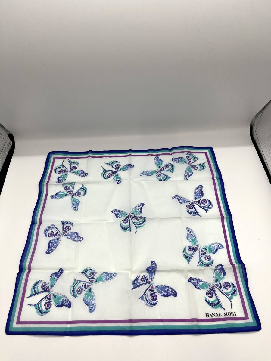 HANAE MORI ハナエモリ ハンカチ バンダナ ブルー系×パープル バタフライ 蝶々 レディース W43 H43