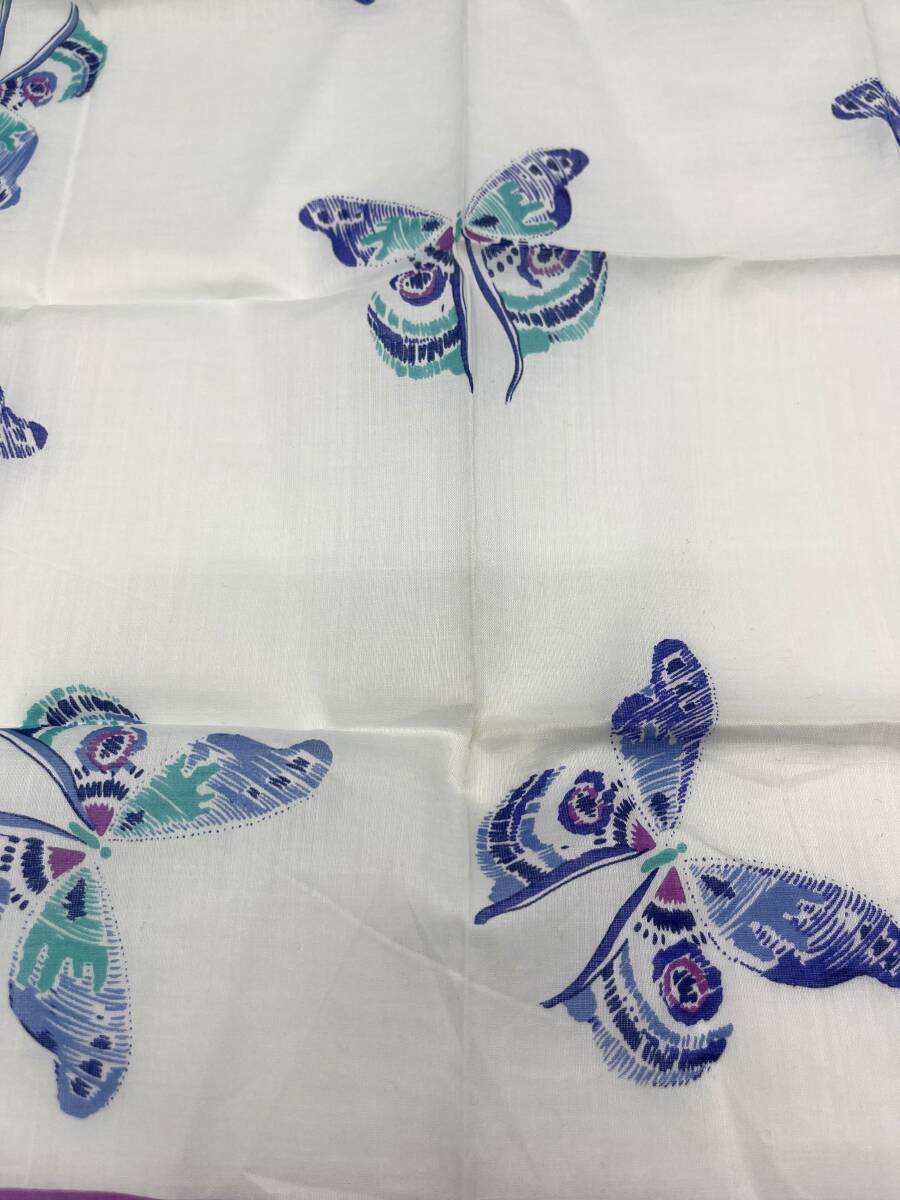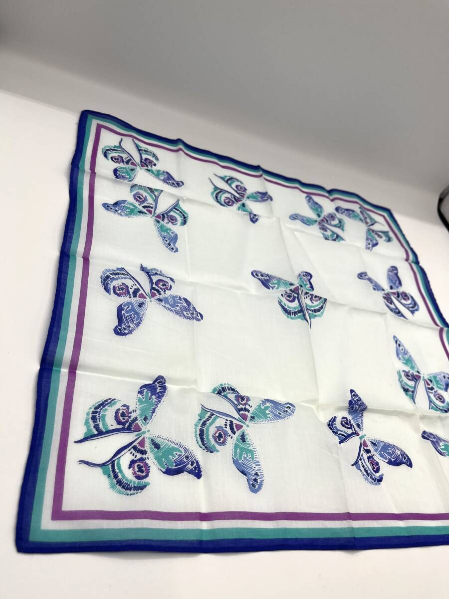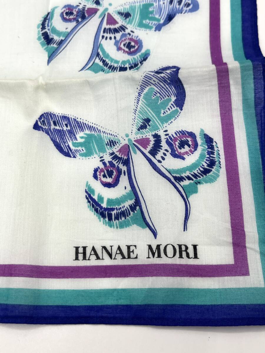 HANAE MORI ハナエモリ ハンカチ バンダナ ブルー系×パープル バタフライ 蝶々 レディース W43 H43
