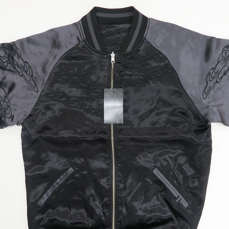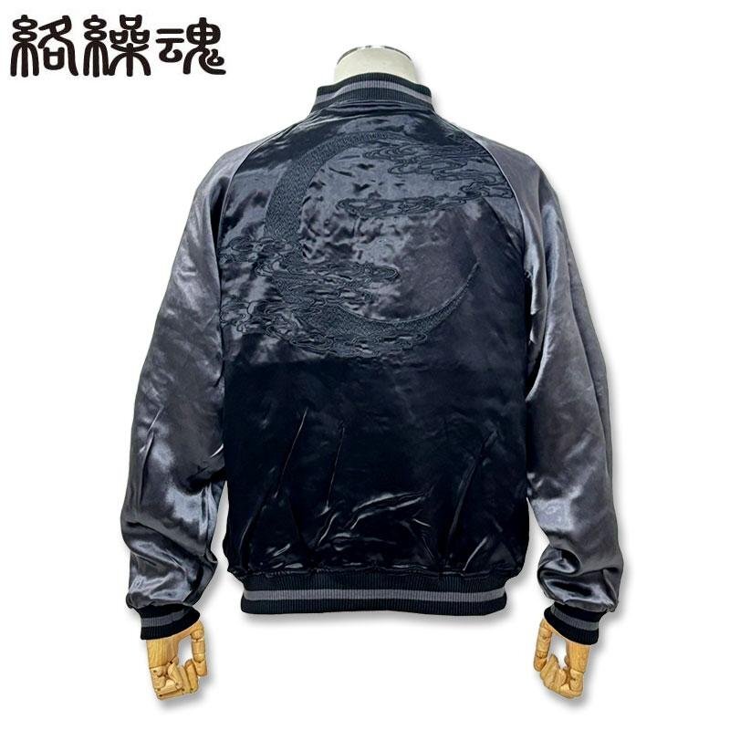 絡繰魂 漆 URUSHI 漆黒 龍 三日月 刺しゅう リバーシブル スカジャン L 242081 黒 ブルゾン メンズ