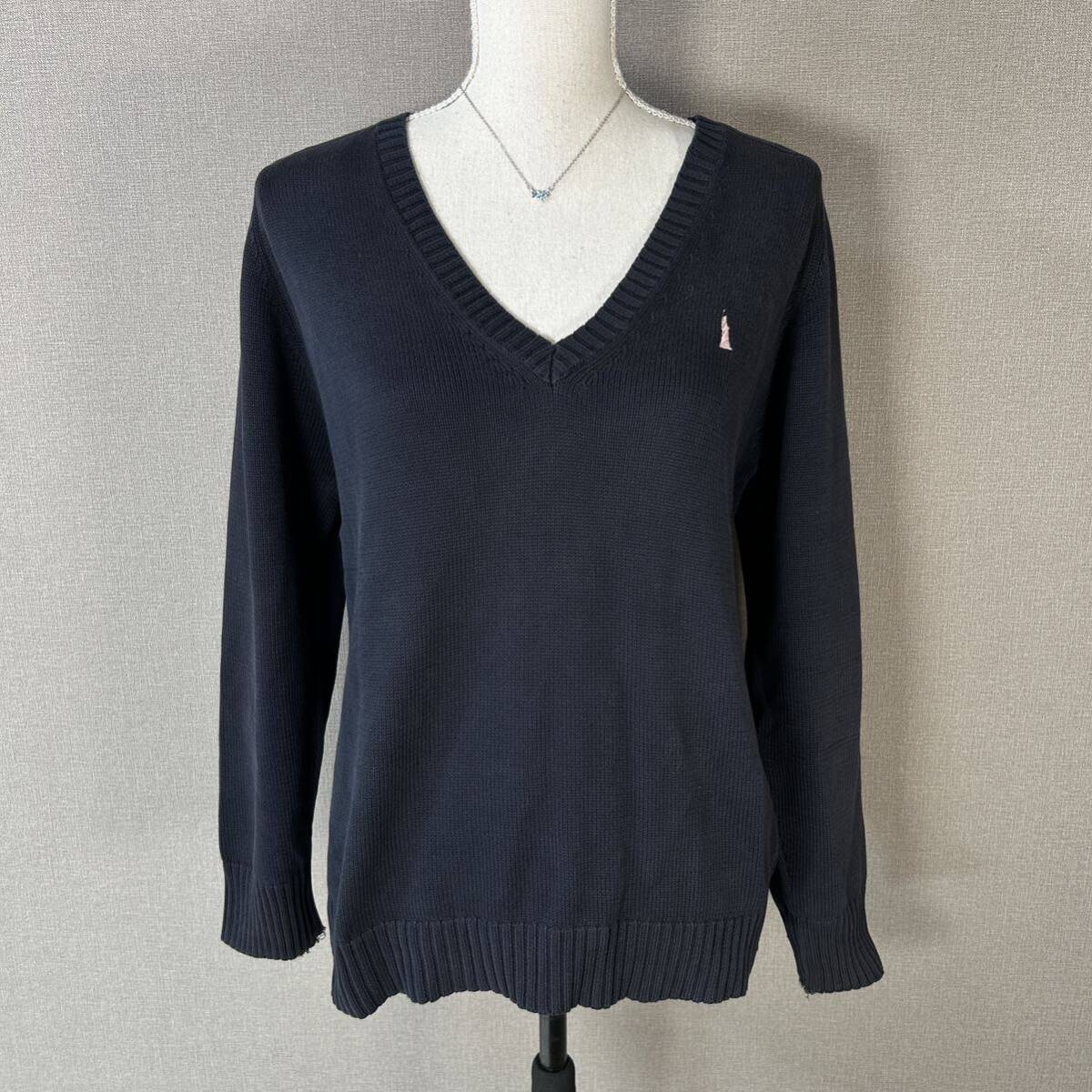 YT1626 EAST BOY イーストボーイ Vネック コットンニット サイズ9 長袖 ロゴ刺 コットン100% ニットセーター