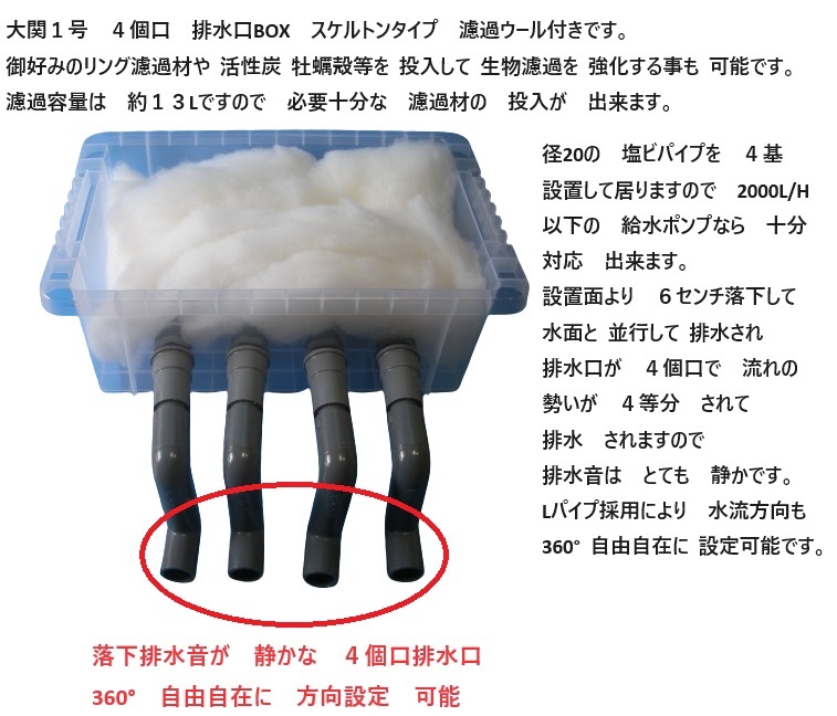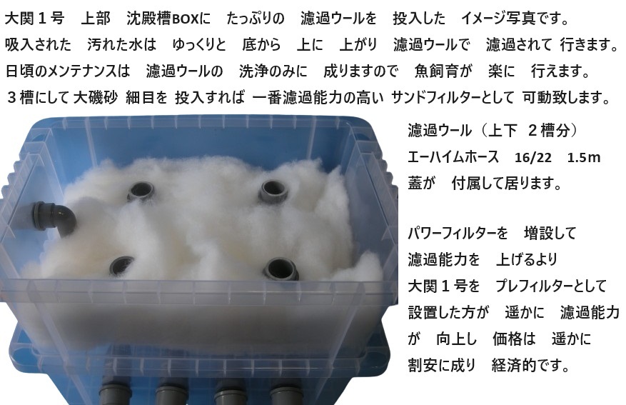 濾過ウールに因る 吹上濾過で 濾過能力が 倍化致します。