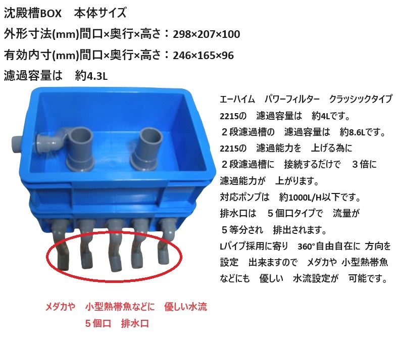 1個の 沈殿槽BOX サイズ (濾過容量 約4.3L)