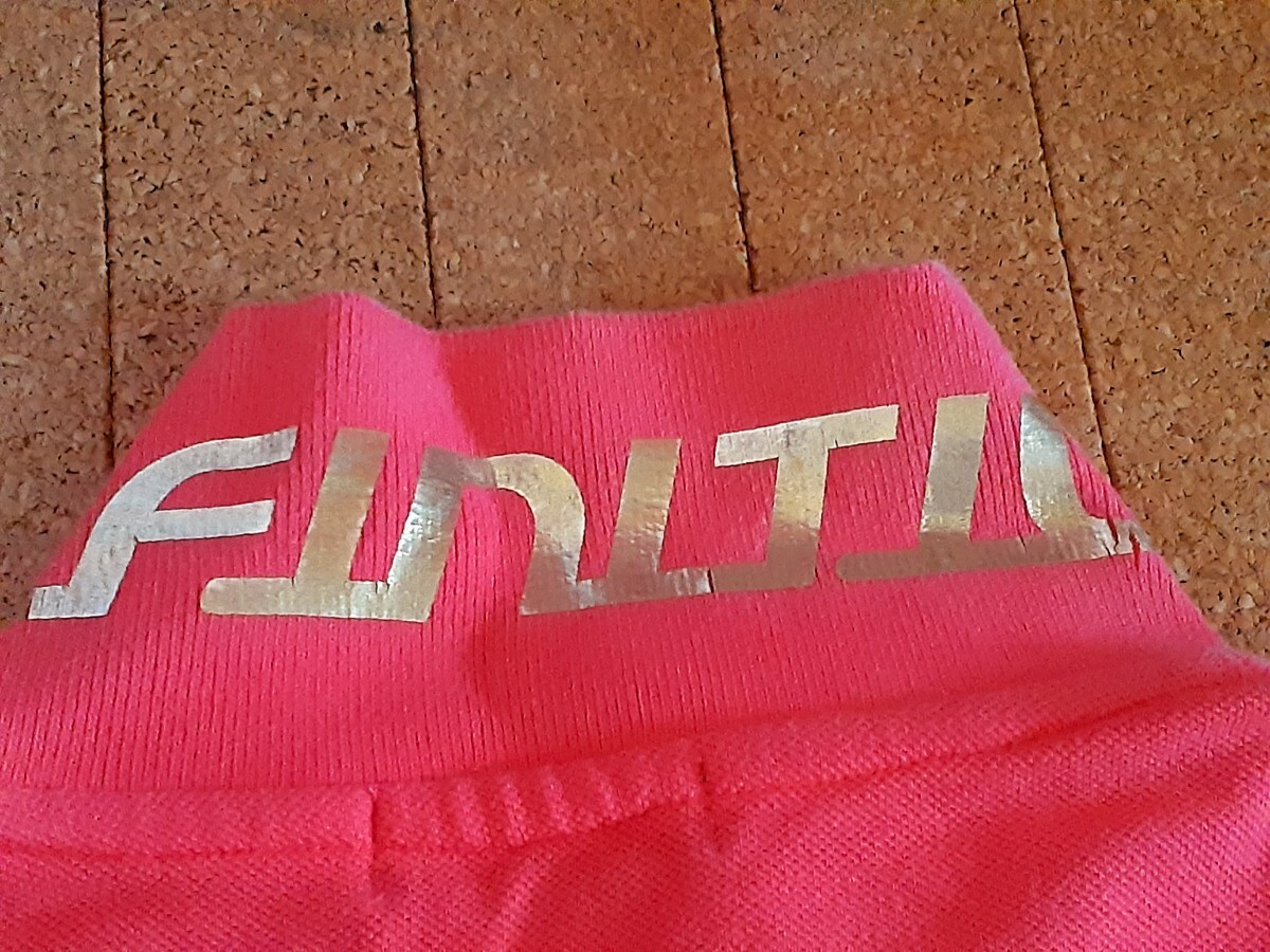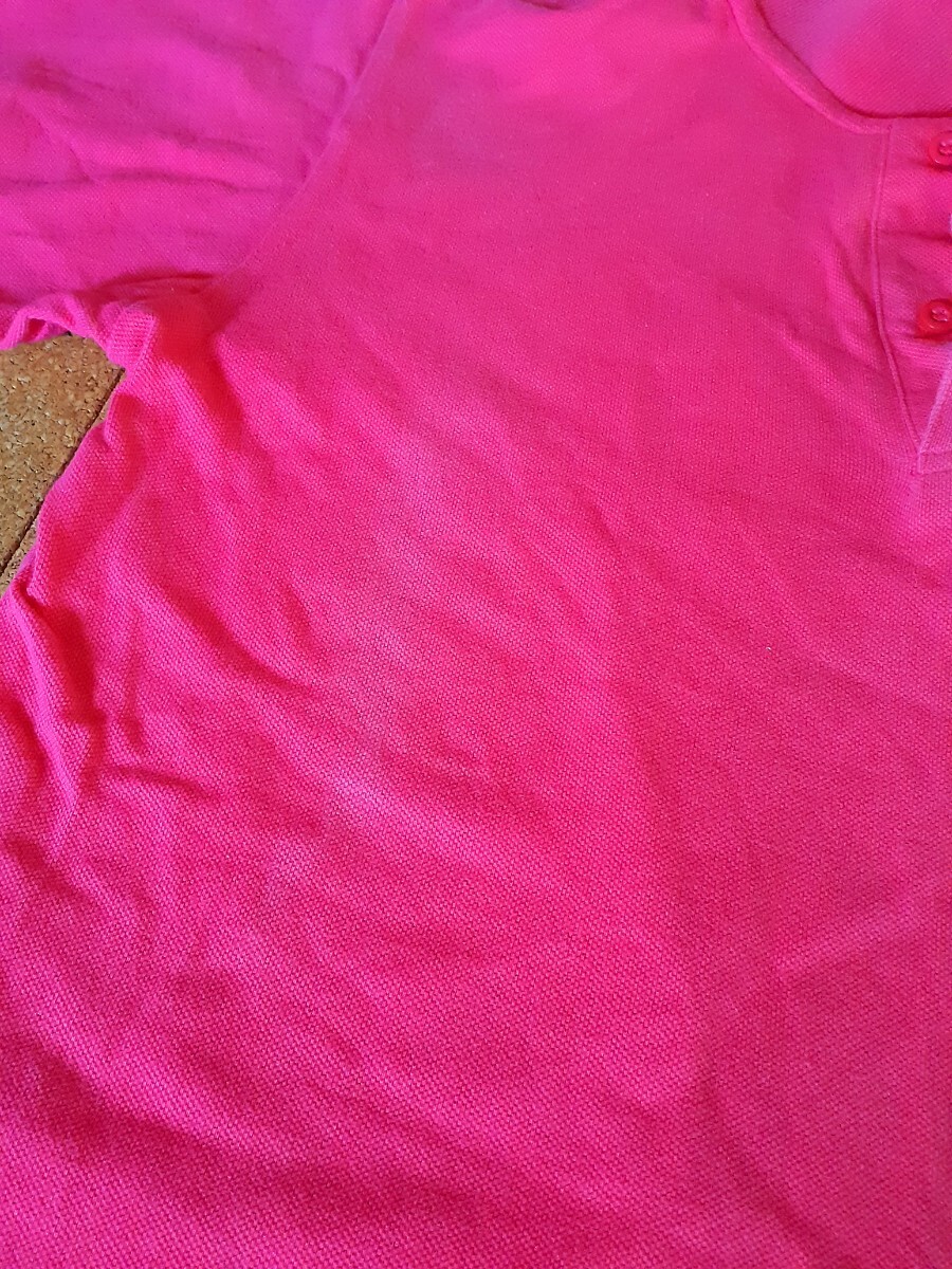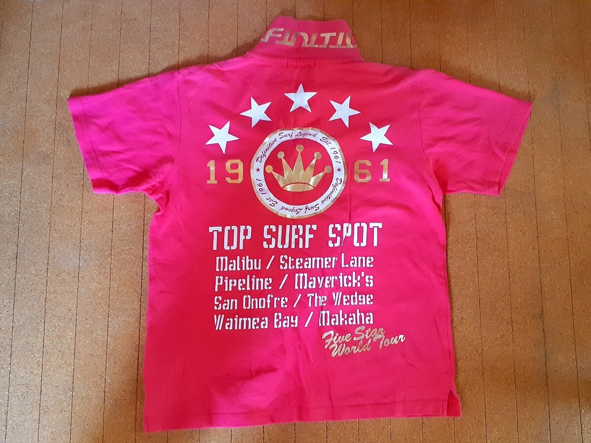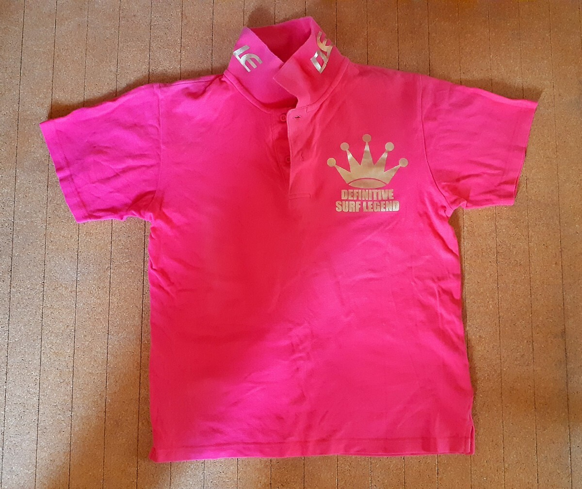 【送料込み!!】PETIT REITRE メンズ半袖サーフポロシャツ Mサイズ ピンク×ゴールド×白 使用感あり【濃いピンク♪】【レアカラー!!】