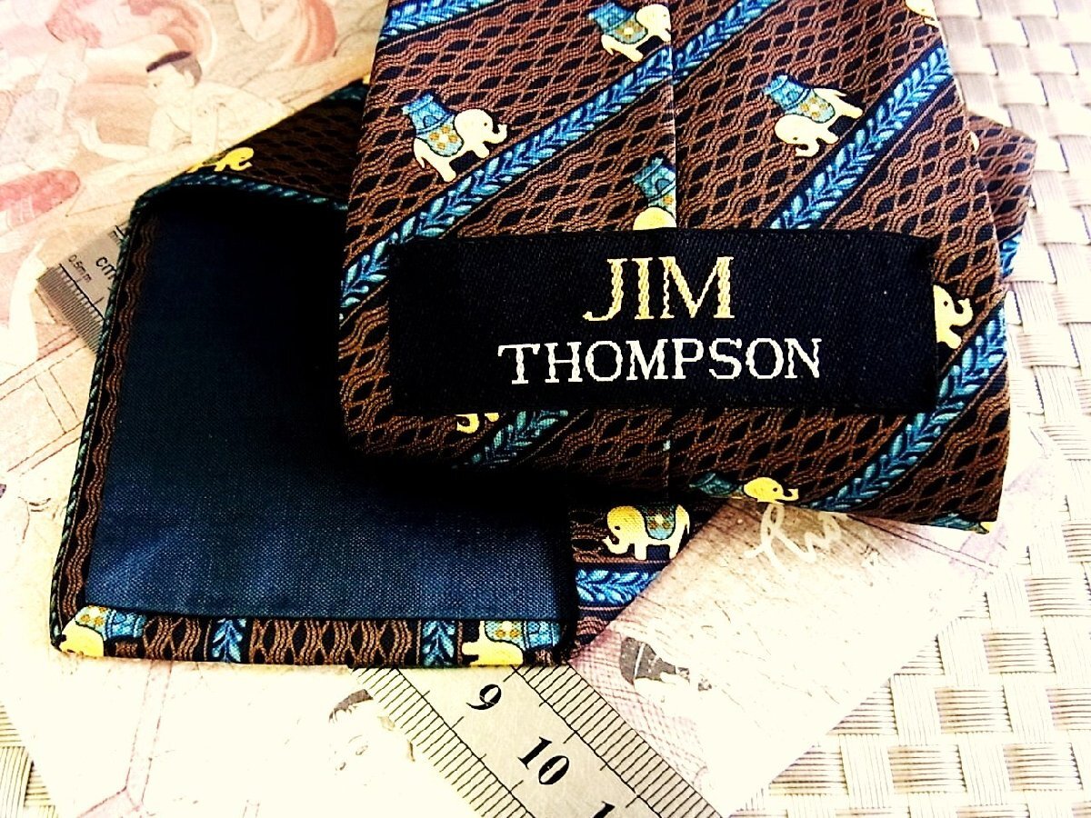 ♪34517C♪良品【象 ゾウ 動物 ストライプ 柄】ジムトンプソン【JIM THOMPSON】ネクタイ