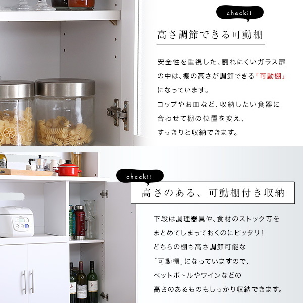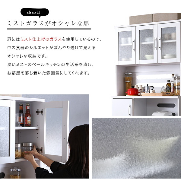 商品説明 | 商品名:90㎝幅 ホワイト食器棚 パスタ カラー:ホワイト色 商品サイズ:(約)幅90x奥行41x高さ180cm 梱包サイズ (3-1)63x40x18cm (3-2)95.5x45x13cm (3-3)96x43x13cm 【素材】 構造部分:パーチクルボード、MDF 表面加工:プリント式化粧合板 可動棚板4枚付 1500W2口コンセント付 お客様組立商品 出品商品はホワイト色です。 画像に写っている他の商品は付属致しません。 商品画像は、デジタルカメラで撮影しておりますので、 お客様のPCモニターやインターネット環境の違いにより、 多少色合いが違って見えることが御座います。 予めご了承下さい。 |