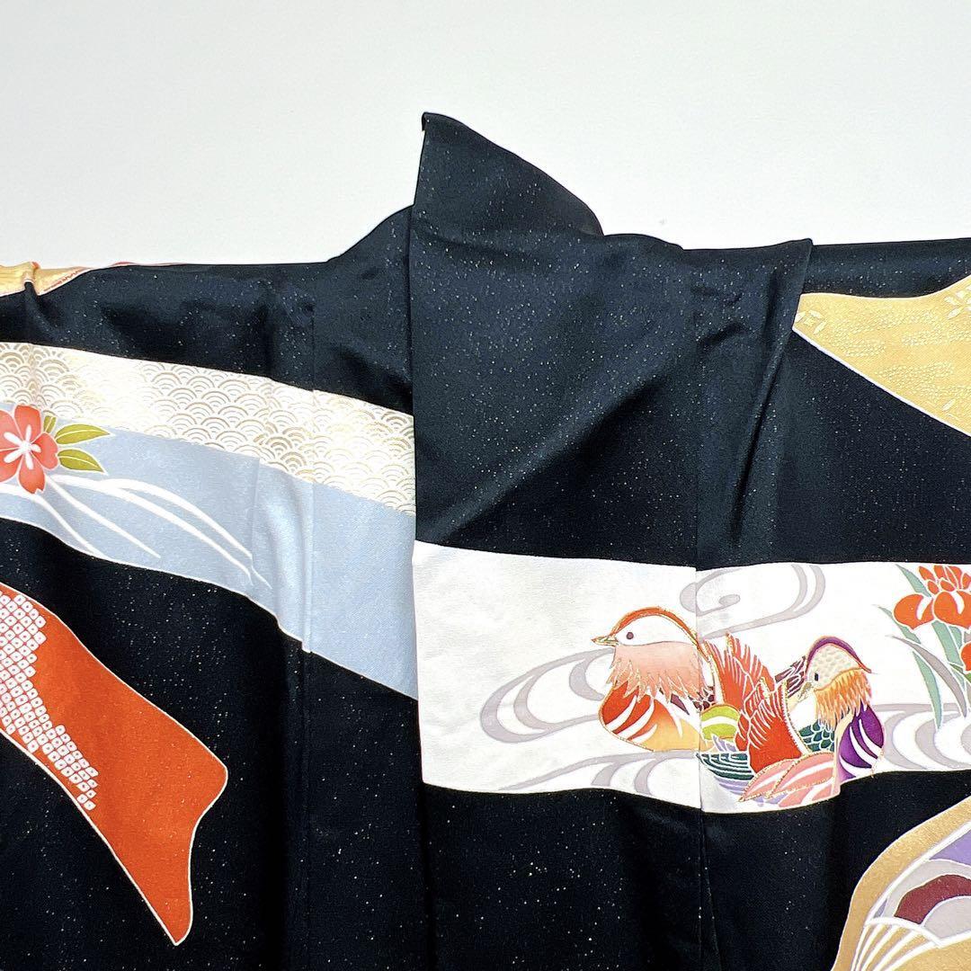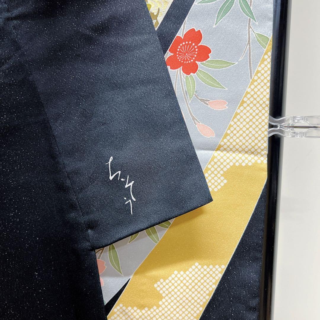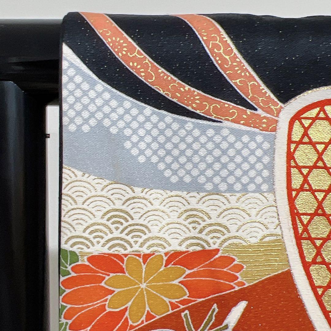 千總謹製 黒地に束ね熨斗 金通しに刺繍 振袖 着物
