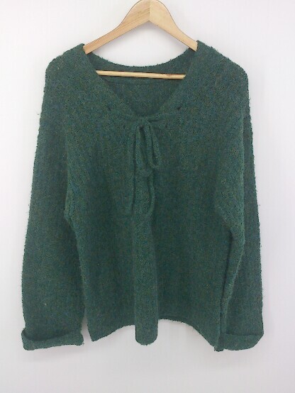 ◇ LOWRYS FARM ローリーズファーム ビックシルエット 長袖 ニット セーター サイズF グリーン系 マルチ レディース E