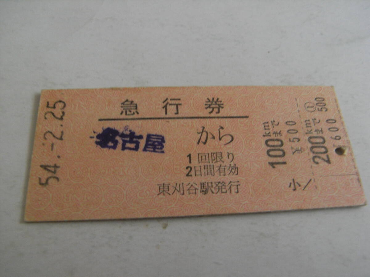 急行券 名古屋から200kmまで 昭和54年2月25日 東刈谷駅発行