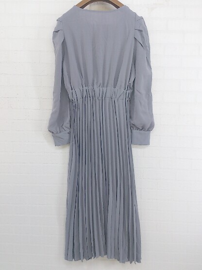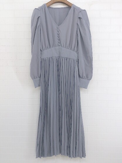 ◇ GRL グレイル Vネック プリーツ 長袖 膝下丈 ワンピース サイズS グレー レディース P