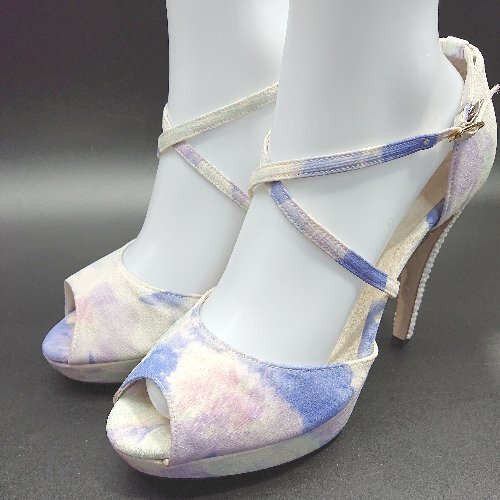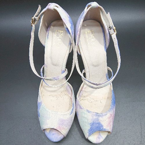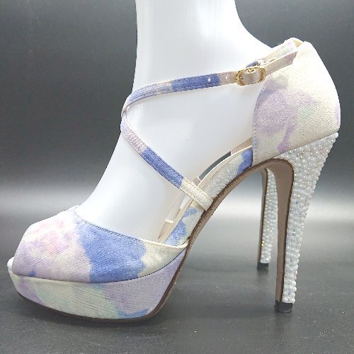 ◇ ESPERANZA エスペランサ ストーン オープントゥ パンプス サイズL ブルー レディース E