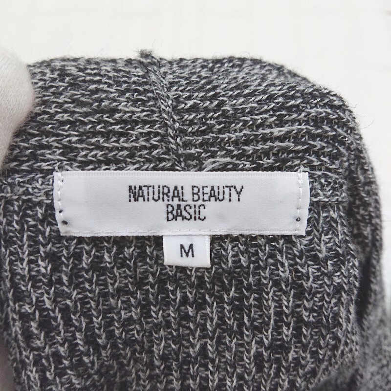 ◇ NATURAL BEAUTY BASIC Vネック 七分袖 ニット セーター サイズM ブラック グレー レディース P