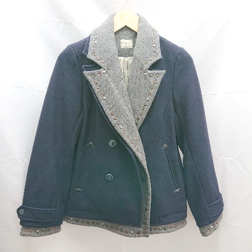 ◇ Ungrid アングリッド スタッズ 無地 長袖 ピーコート サイズM ネイビー レディース E