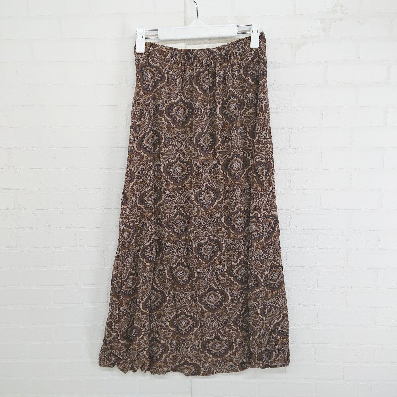 ◇ apart by lowrys 総柄 ロング フレア スカート サイズF ブラウン系 ベージュ系 マルチ レディース P