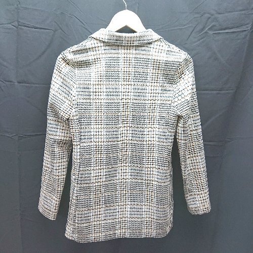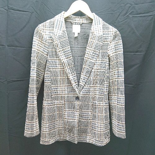 ◇ H&M エイチアンドエム チェック柄 Vネック ボタン シンプル 長袖 ジャケット サイズUK4 ベージュ系 レディース E