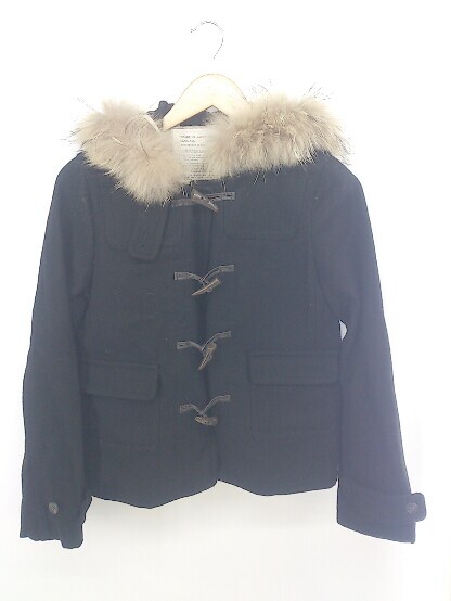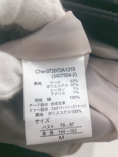◇ who s who Chico チャイニーズラクーンファー ウール混 長袖 ダッフル コート サイズF ブラック レディース E