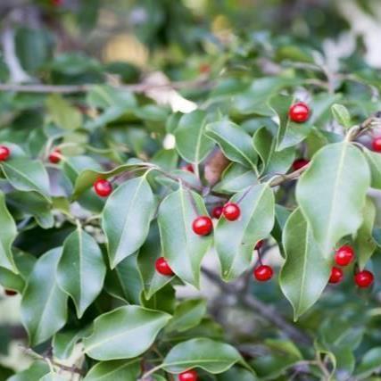 5月下旬頃に白い小さく可憐な花を咲かせ、雌木には冬に真っ赤な美しい実をつけます。