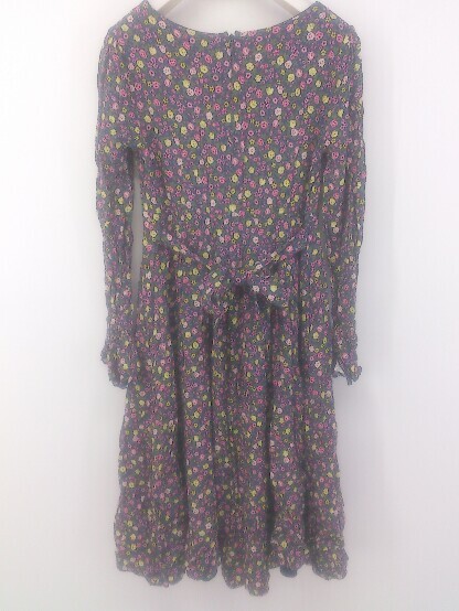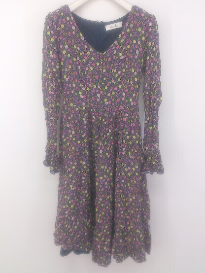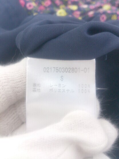 ◇ dazzlin ダズリン 花柄 フラワー リボン 長袖 膝丈 ワンピース サイズS ネイビー マルチ レディース E