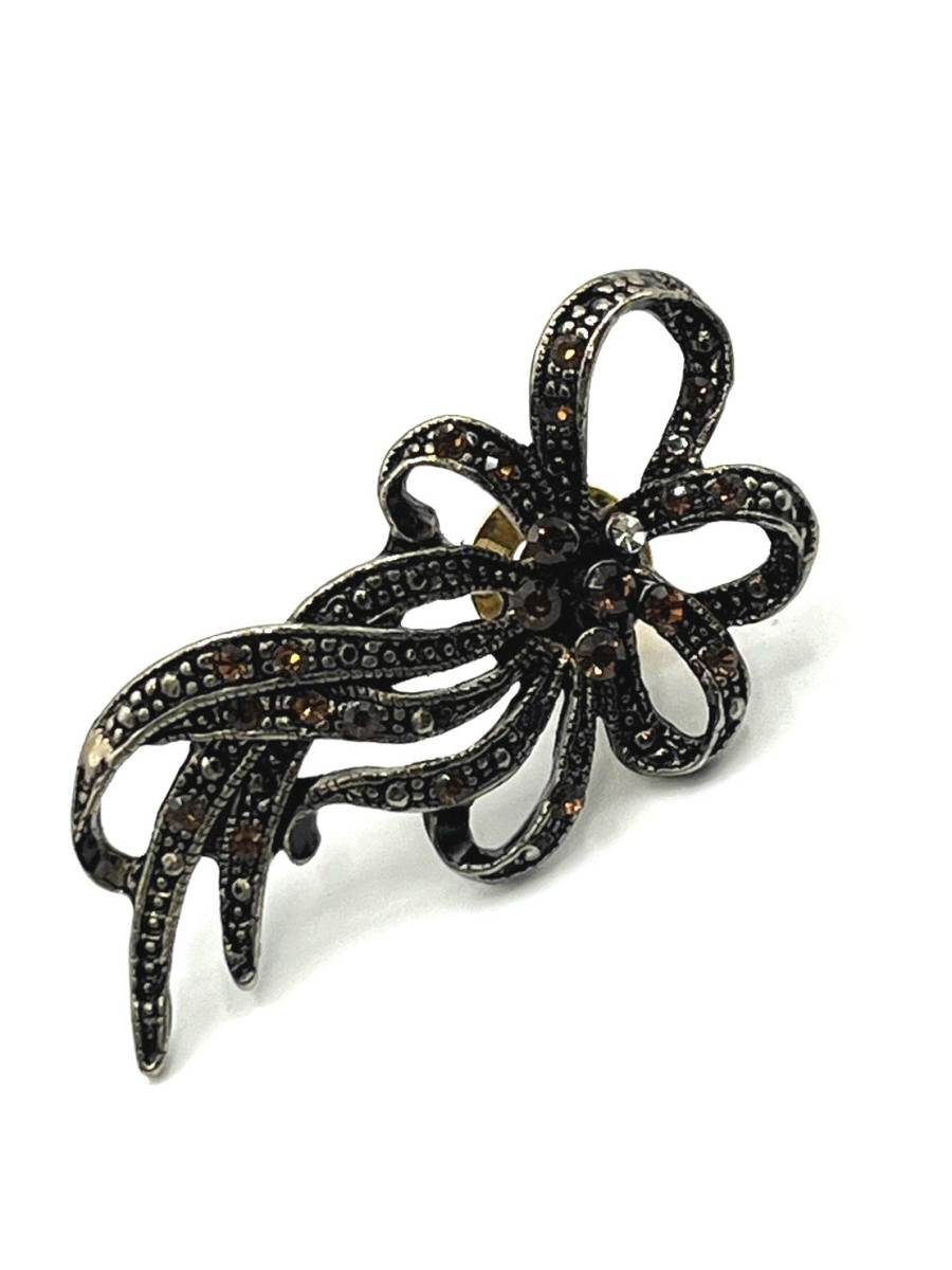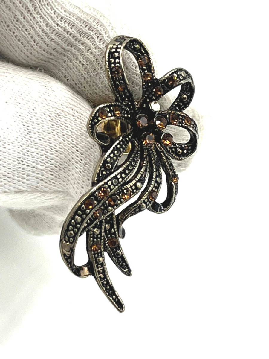 ブローチ ピンズ ピン 花モチーフ フラワー カラーストーン オレンジ系 W4.5 H2.7