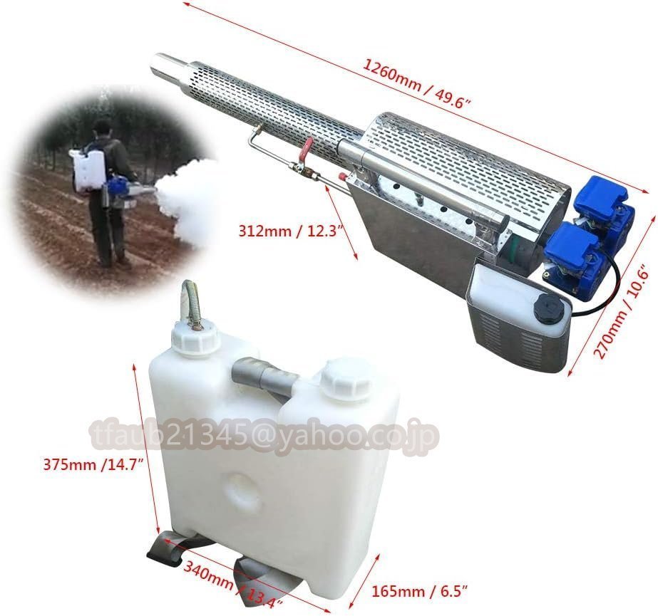 1、ガソリン噴霧器:16L超大容量水槽,2Lガソリンタンク,ダブルチューブ水冷技術,超高出力、1時間で90Lを噴霧可能,水スプレー/スモークスプレー兼用。