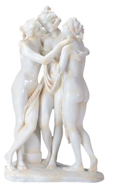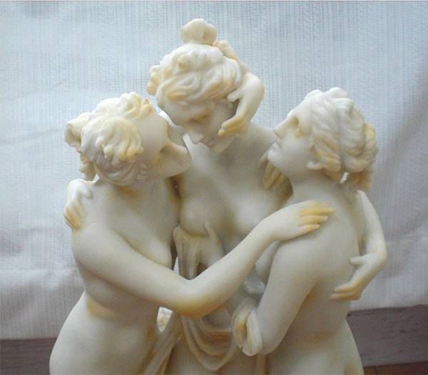 クリームトーン色 レジン製三美神像彫刻 彫像アグライア(輝き)エウフロシュネ(喜び)タリア(花の盛り)三人姉妹輸入品