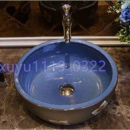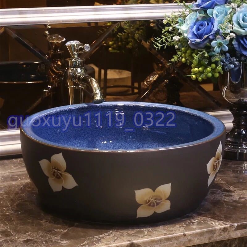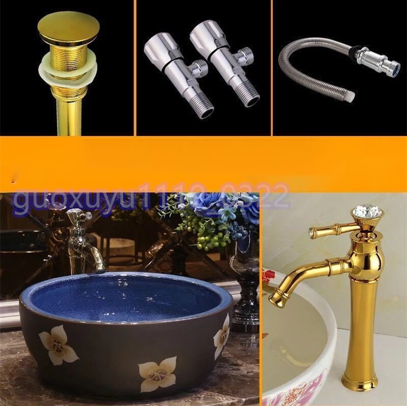 特売!強くお勧め★高級洗面台 洗面ボウルセット 陶器 洗面ボール 手水鉢 手洗器 手洗い鉢 洗面器 蛇口 排水金具付き