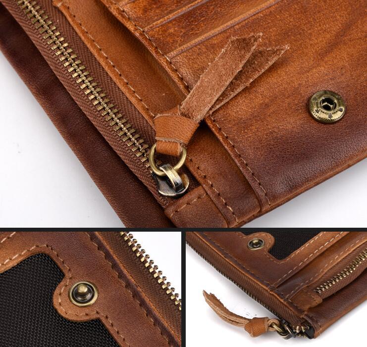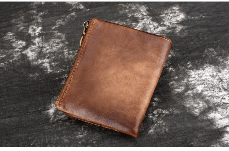 財布 二つ折り 本革 牛革 メンズ ラウンドファスナー 小銭入れ 免許証入れ カード8枚収納 コンパクト 柔らかい ブラウン
