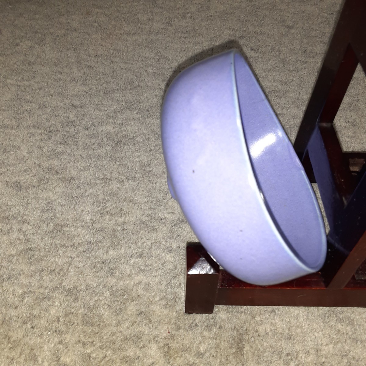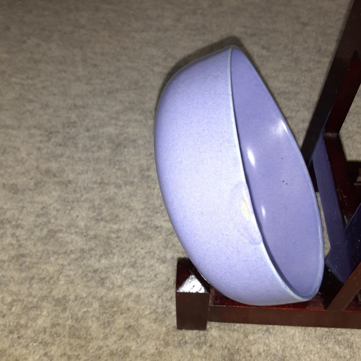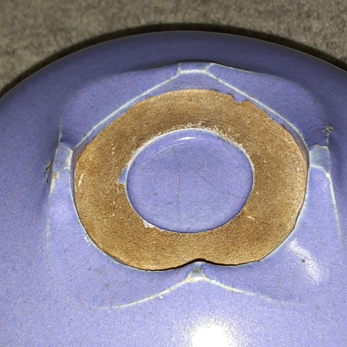 廃業のリサイクル店から引き揚げてきた、薄作りで、藤色に近い瑠璃釉が掛けられた、上野焼・向付と思います(風合いから、古清水かも知れませんが、浅学で特定できません)。