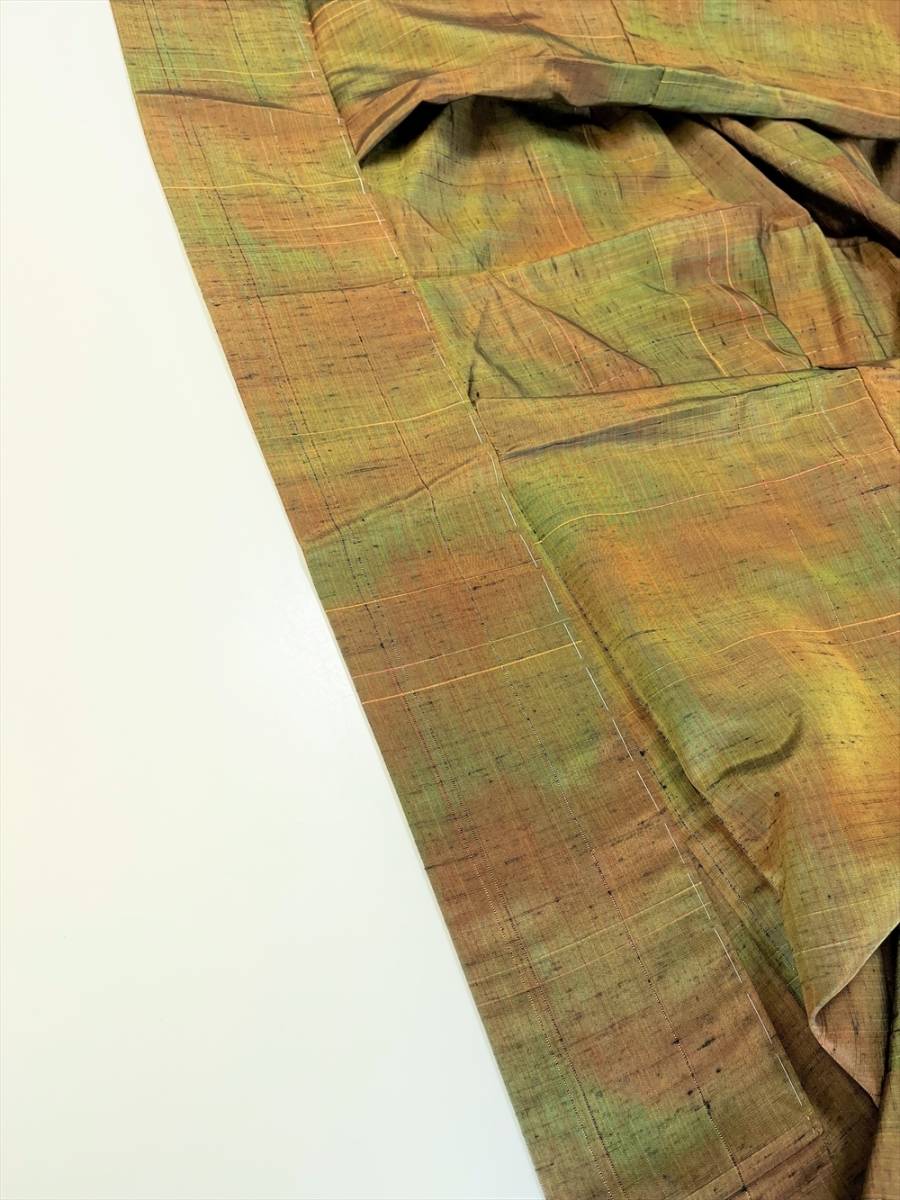 よろけ縞の模様です。ふくらはぎ、上前、袖などにシミがあります。