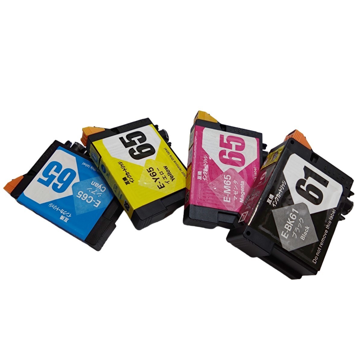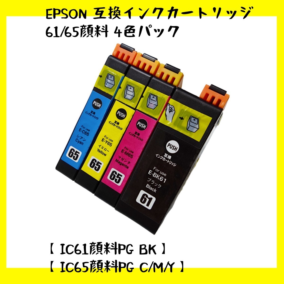 EPSON 61/65顔料 4色パック【IC61顔料PG BK】+【IC65顔料PG C/M/Y】全色顔料 ICチップ残量表示検知機能付き 互換インクカートリッジ