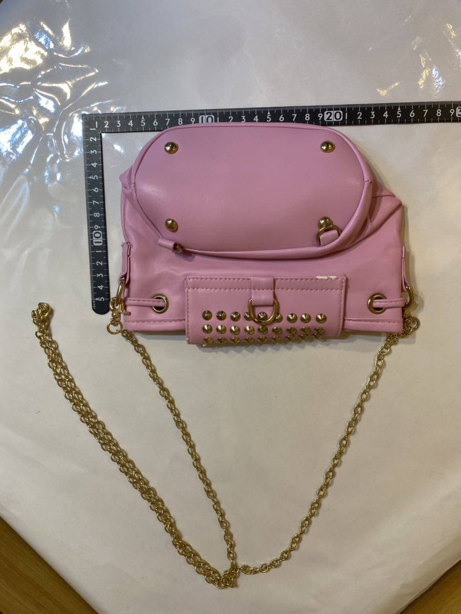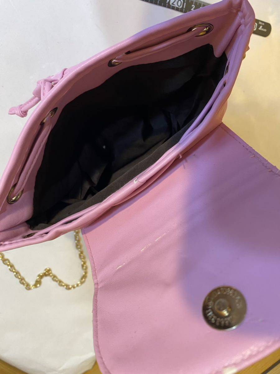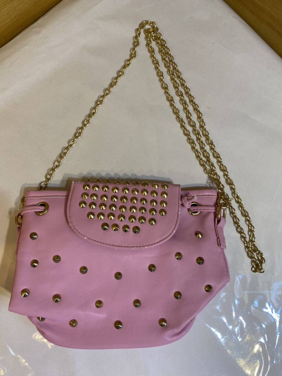 未使用! 女の子 巾着 ポーチ ピンク スタッズ ミニバッグ ショルダー チェーンバッグ