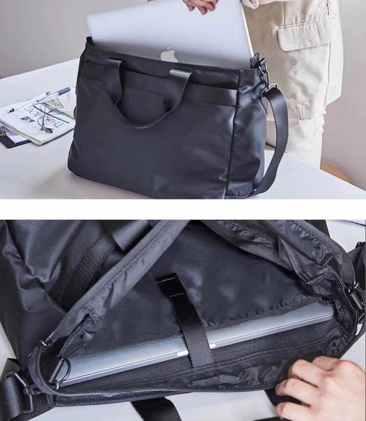 シンプルデザイン男女問わず幅広い年齢層でご利用いただけ合わせやすいバッグです。A4サイズもしっかり収納でき、ビジネスシーンでお使いいただけるデザインマウスやコード、タッチペン文房具バッテリー書類やマウスなども一緒に収納できますもちろんマザーズバッグとしてもお勧めです。