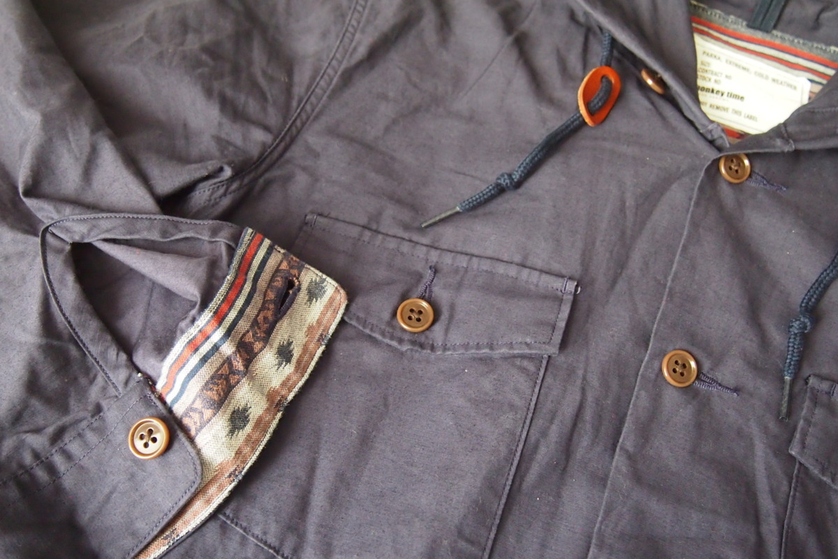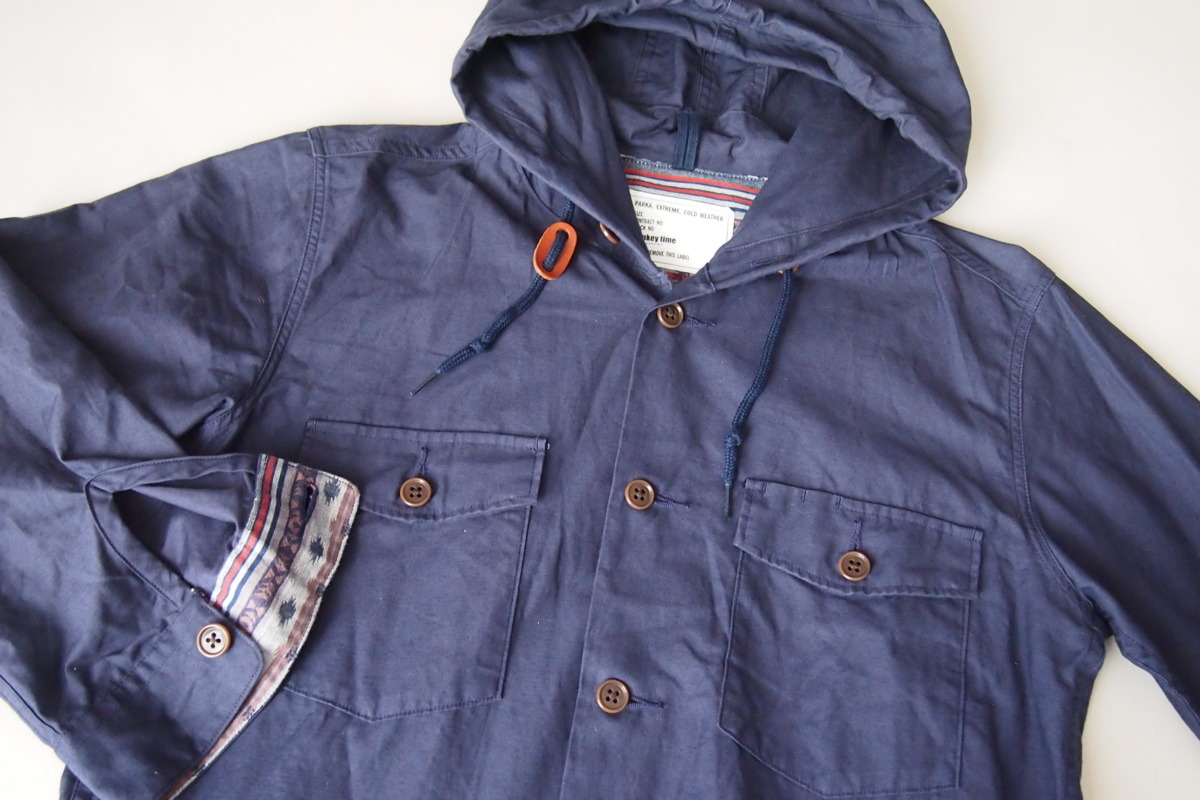 モンキータイム/ユナイテッドアローズ★七分袖フードシャツ★コットン リネンブレンド★ドローコード&ワイヤー仕込み 一体式フード★Mサイズ | |||||||||||||||||||