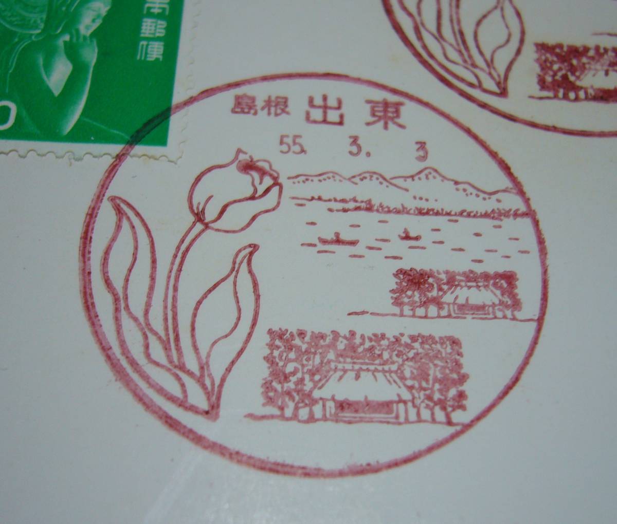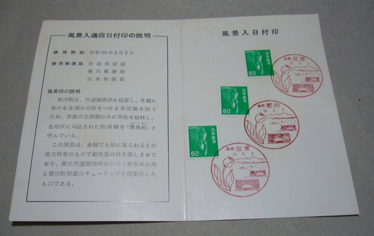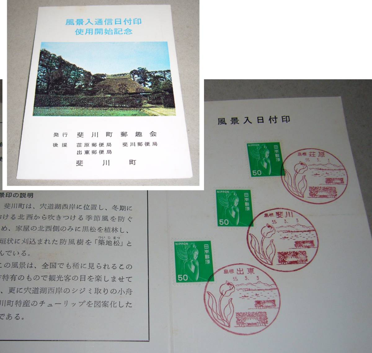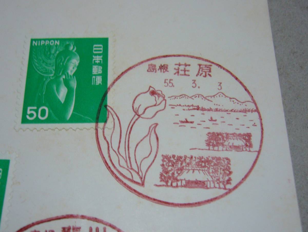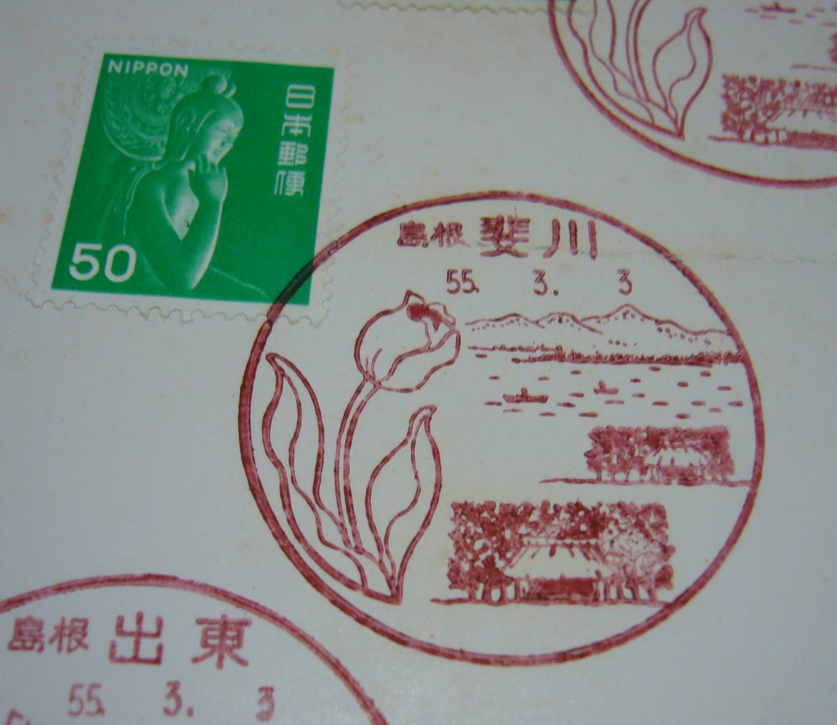 記念台紙 風景入り通信日付印 使用開始記念 斐伊川町郵趣会『弥勒菩薩像』風景印