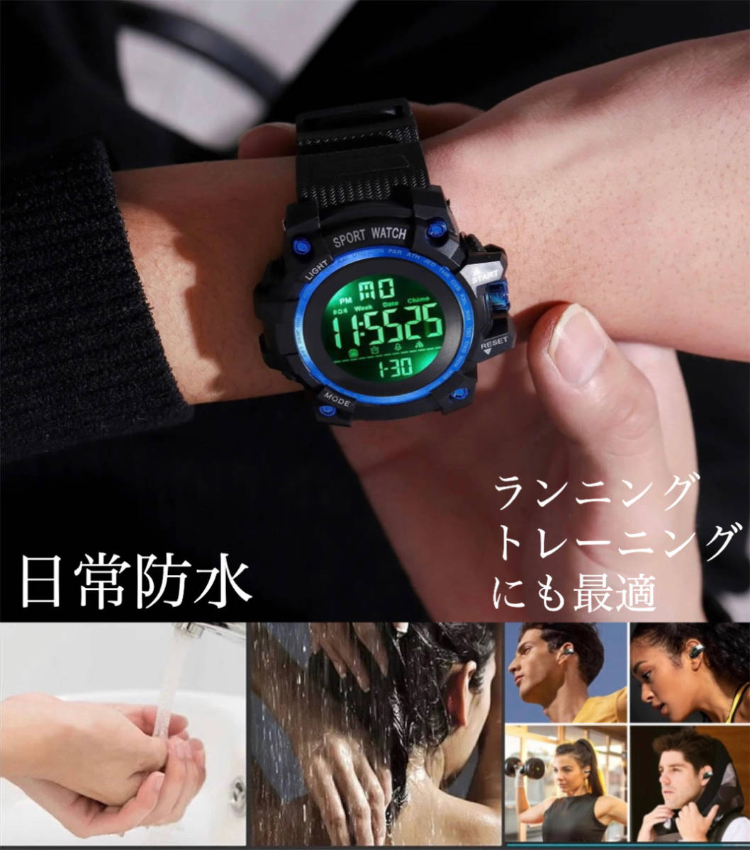 スポーツ腕時計 腕時計 時計 デジタル式  LED デジタル腕時計 デジタル 自転車 スポーツ  アウトドア キャンプ ランニング アウトドア