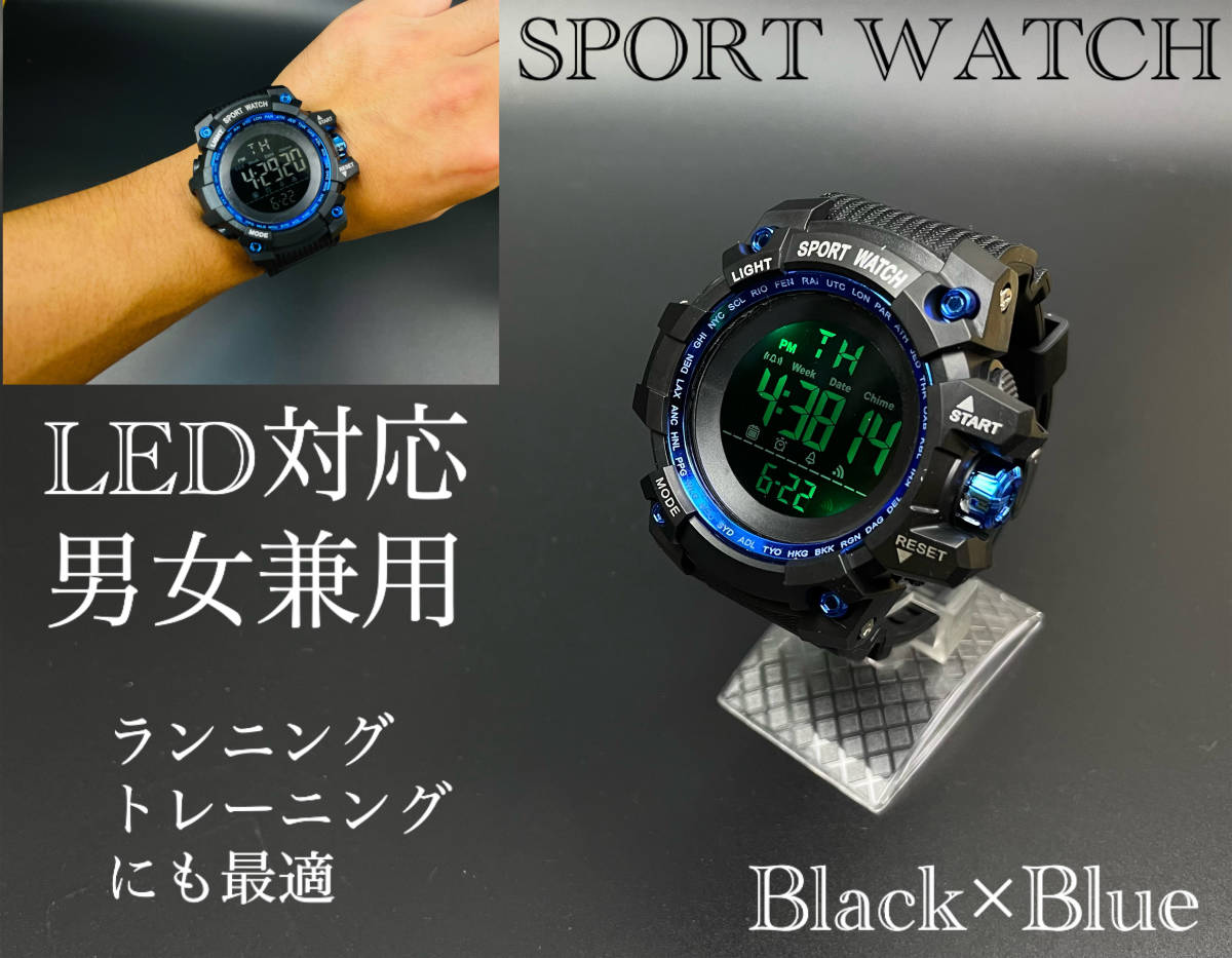 スポーツ腕時計 腕時計 時計 デジタル式 LED デジタル腕時計 デジタル 自転車 アウトドア キャンプ ランニング アウトドア ブルー
