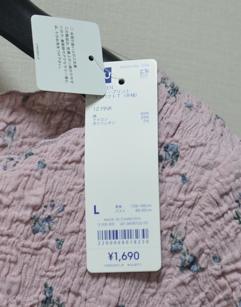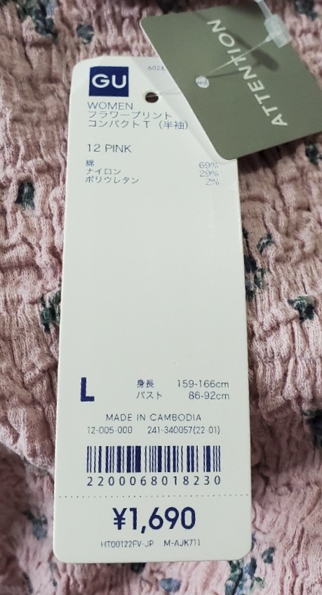 定価1,690円●GU●コンパクトT シャツ Lサイズ ピンク系 未使用品