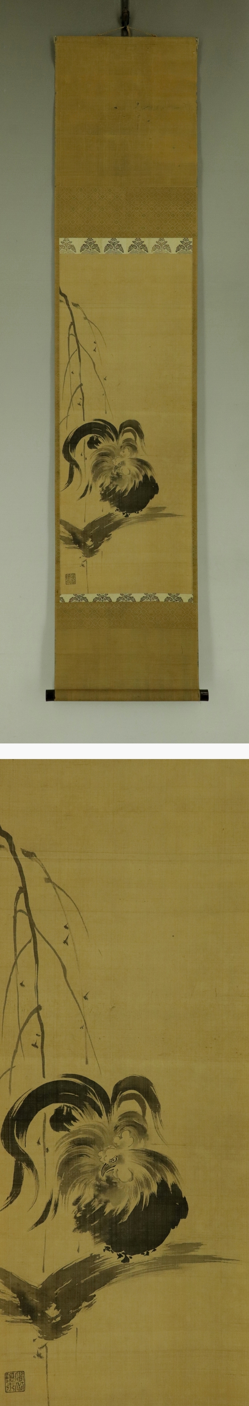 | №2307007【真作】梨木祐為【柳鶏図】◆絹本◆合箱◆掛軸 | |