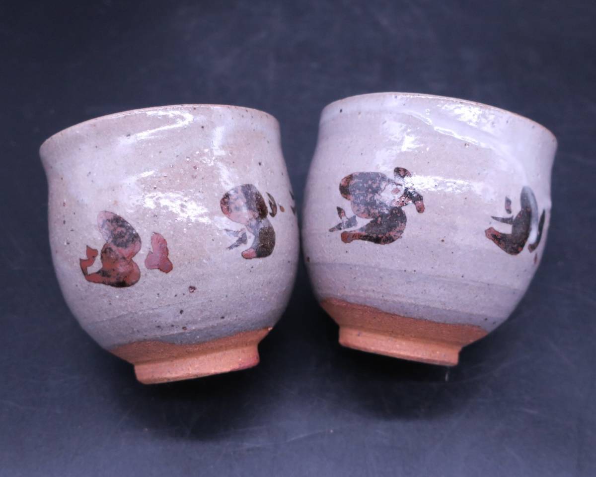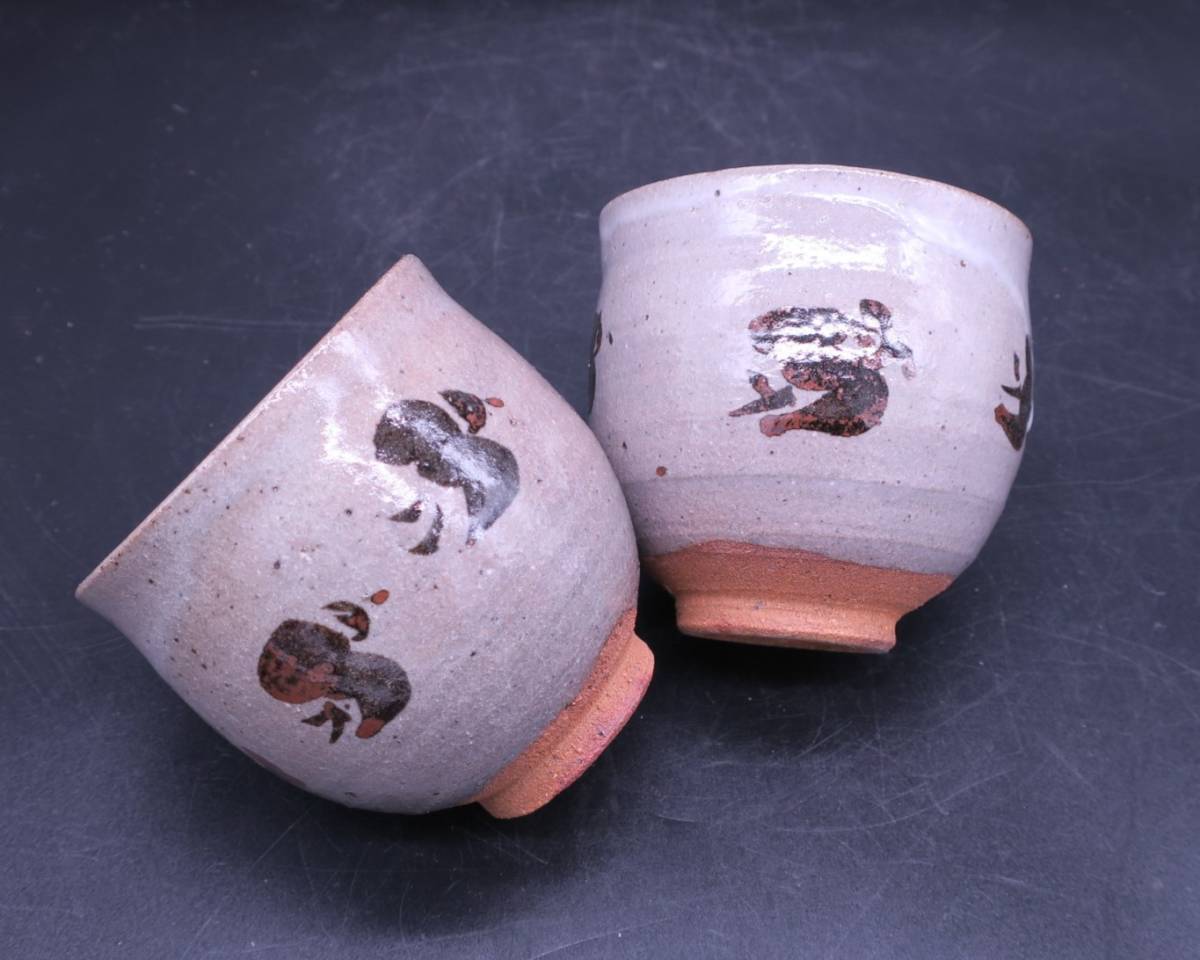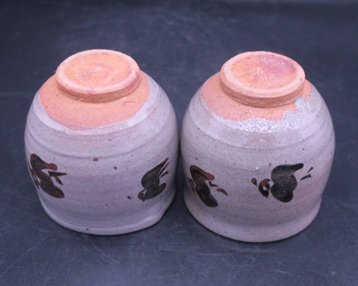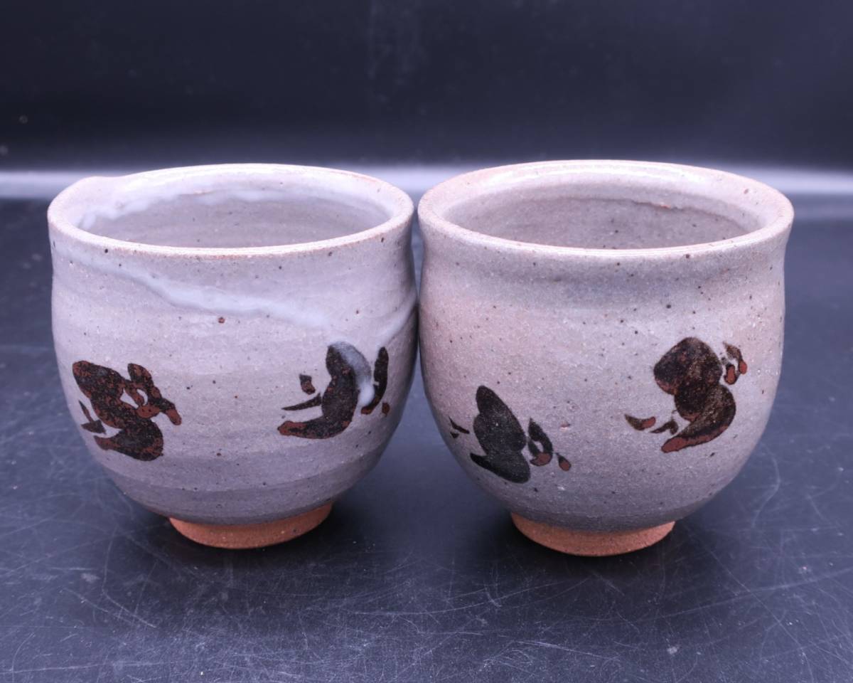 唐津の名手 西岡小十さん作の絵唐津浜ちどり文組湯呑です。