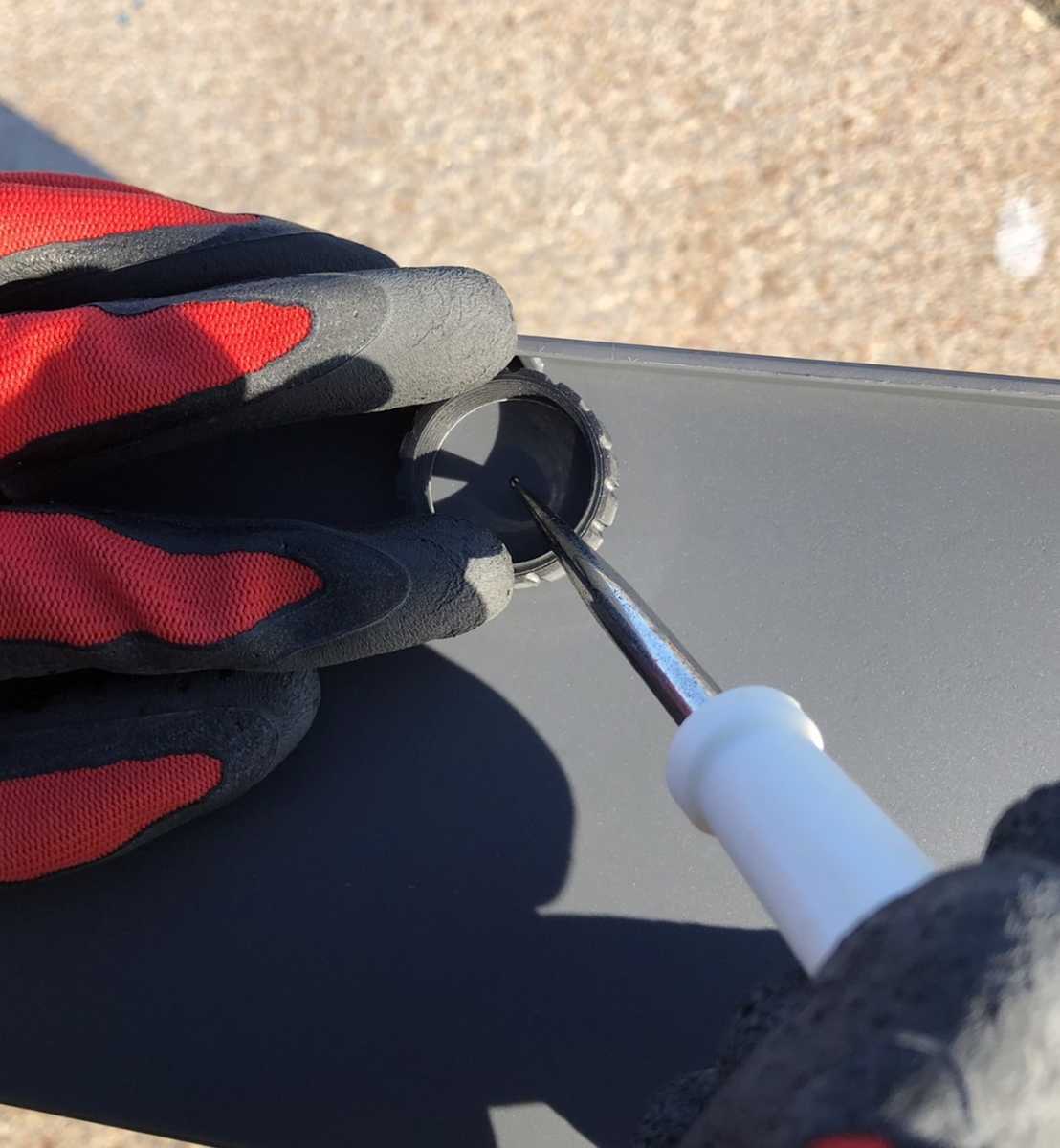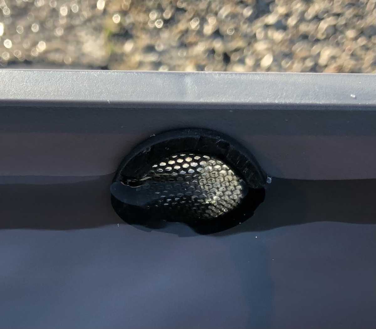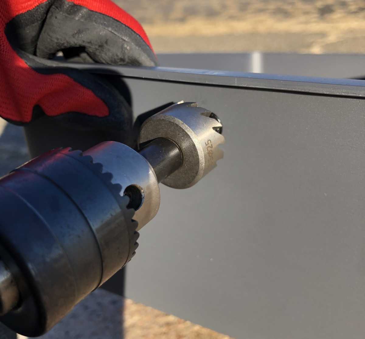 タライ、トロ舟の好きな位置に25ミリの穴を開けて、裏から手回しで留めるだけ