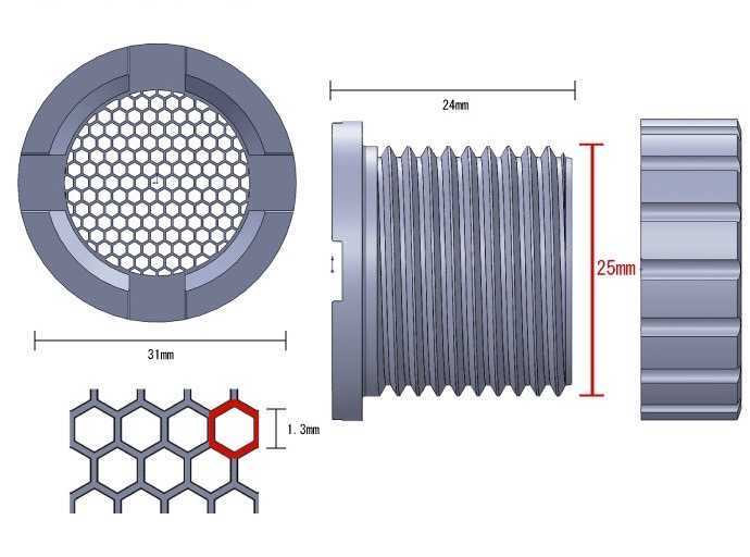 ◯大きさは25mmへサイズアップ!ネット部分はハニカム一体型で穴の大きさも約1.1~1.4mmにバージョンアップ!排水量も十分です。85L、120L〜190Lの超大型の成魚水槽に対応します。