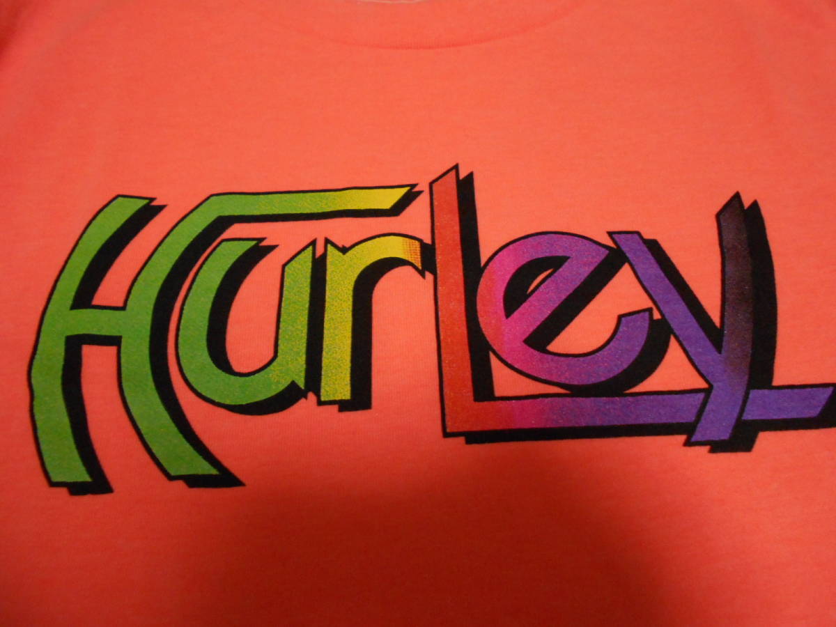 カリフォルニア サーフィン×スケートボードカルチャーのアイコン、HURLEY グラデーションマルチカーロゴ、 シャーベットネオンオレンジの発色が尋常では無く良いテイスト