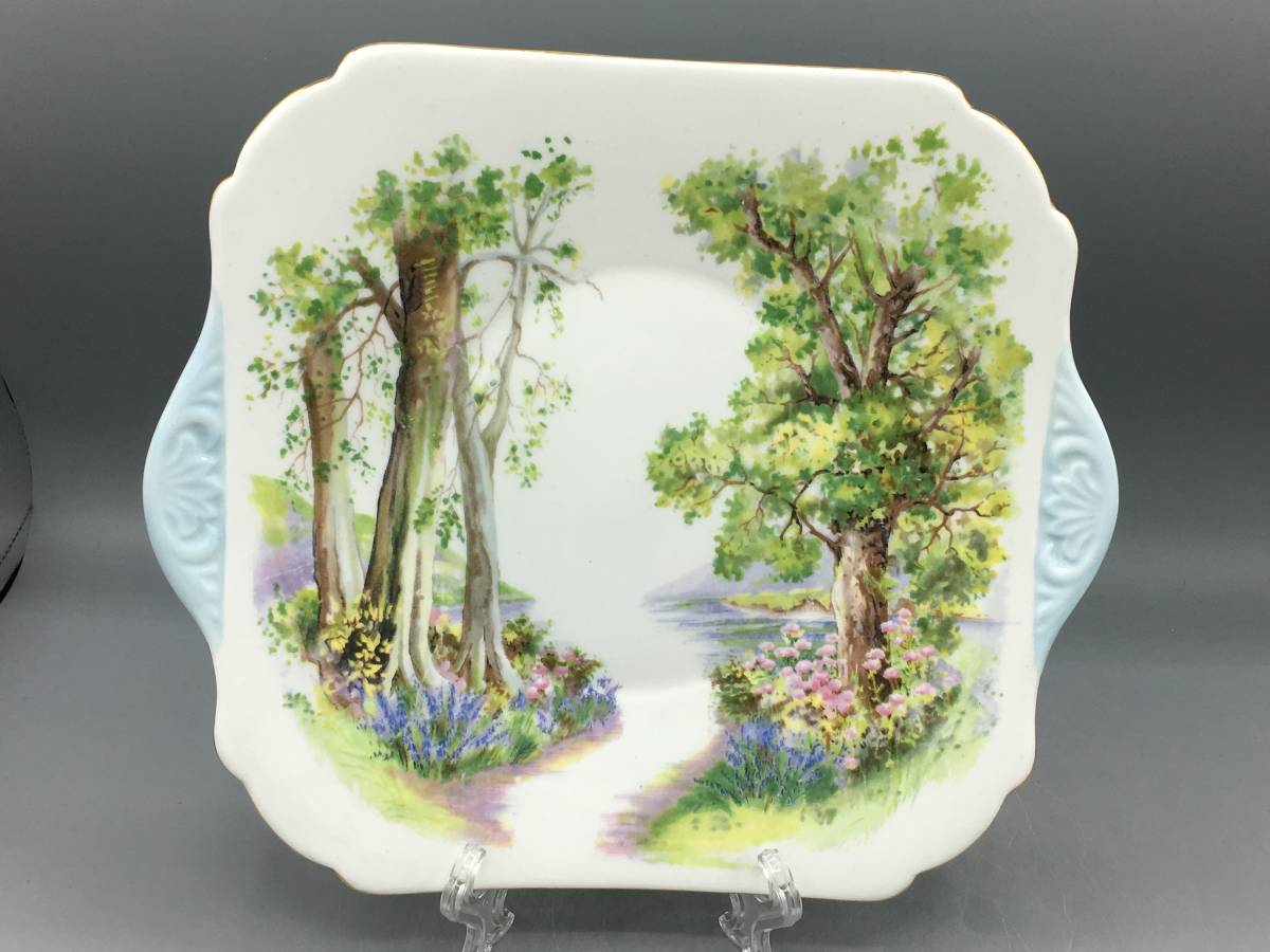 シェリー ケーキ皿 金彩 森林 (No.10)