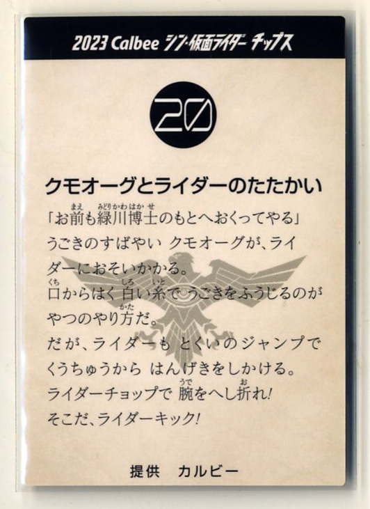| ◆防水対策 厚紙補強 №20番 クモオーグとライダーのたたかい (大森南朋) カルビー シン・仮面ライダーチップスカード 送料無料 即決 | |