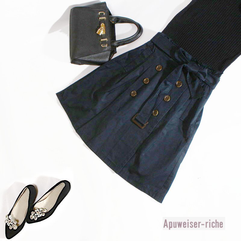 美品 Apuweiser-riche アプワイザーリッシェ ■ 秋 合物 ハリ コットン ベルト一体 トレンチデザイン タイト スカート 2 9号 ネイビー 紺